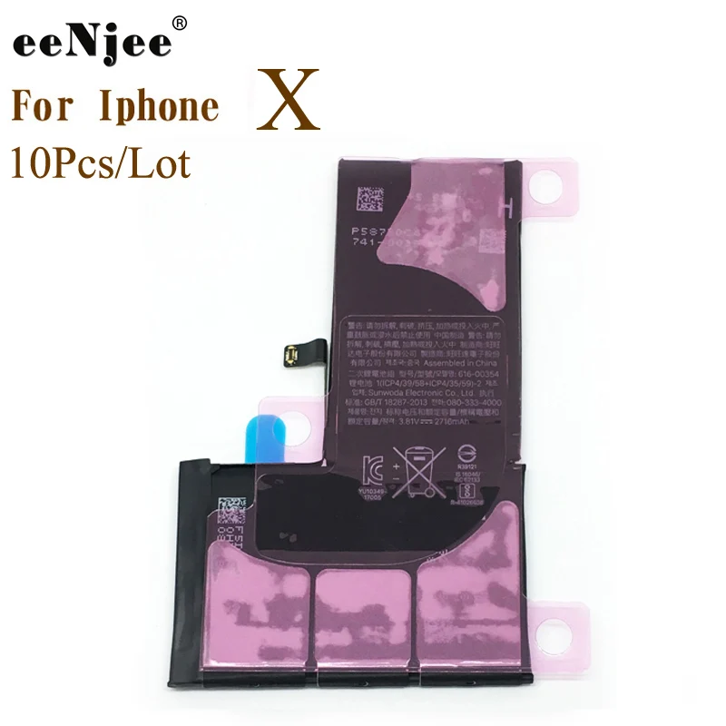 1.EENJEE Оригинальное количество батареи 10 шт для Iphone X 0 цикл литий-ионный полимерный запасные части мобильного телефона2. Емкость: 2716 мАч3. Батарея: используется высококачественный элемент, 100% реальная емкость, более 500 раз4. Материал ячейки: литий-полимерный 100% LiCoO2, более безопасный и длительный срок службы, не расширяется, не взрывается5.IC: оригинальный IC, оригинальная печатная плата!6. Защита: защита от перезарядки, переразряда, перегрузки по току, перенапряжения!7. Гарантия: 12 месяцев8. Качество: ORG класс, работа как оригинал, без оригинального логотипа.
