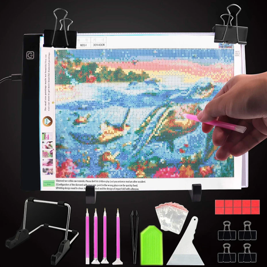 5D DIY алмазная живопись A5A4 со светодиодной подсветильник кой, доска для рисования, рисования, алмазная вышивка, инструменты, комплекты аксессуаров