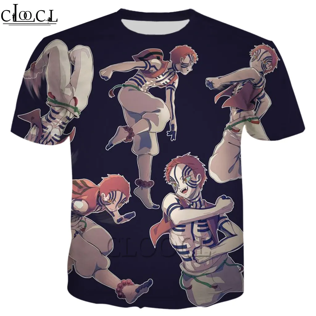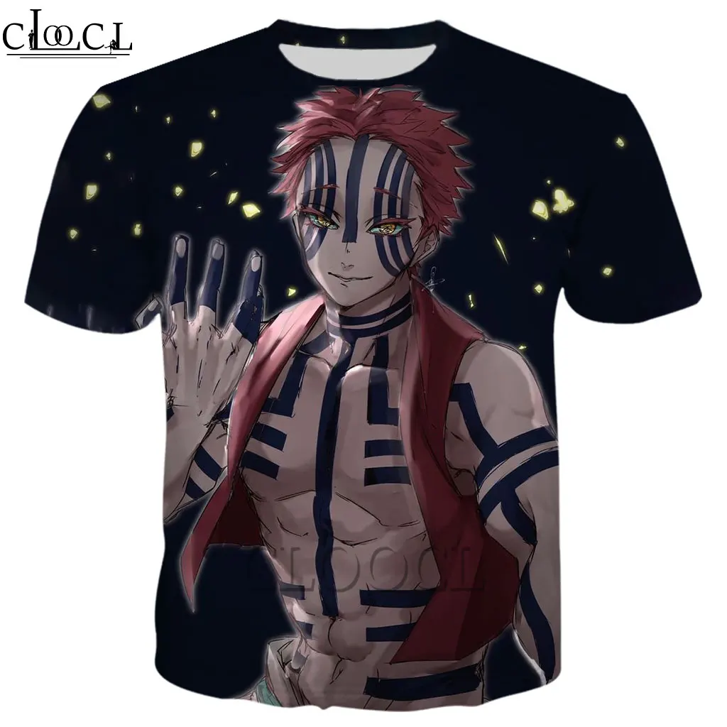 Футболка HX Kimetsu No Yaiba с принтом фильма: Mugen Train Akaza, мужские и женские футболки в стиле хип-хоп с коротким рукавом и 3D-принтом, Прямая поставка