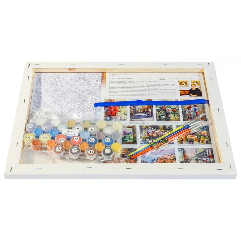 Набор для творчества “Живопись на холсте” содержит все необходимое для создания картин: холст, натянутый на подрамник, акриловые краски, расфасованные в маленькие баночки, контрольный лист, по которому вы всегда можете свериться в ходе работы и 4 кисточки разнойтолщины. Раскраска предназначена для детей и взрослых, у этого интересного процесса нет ограничений по возрасту.