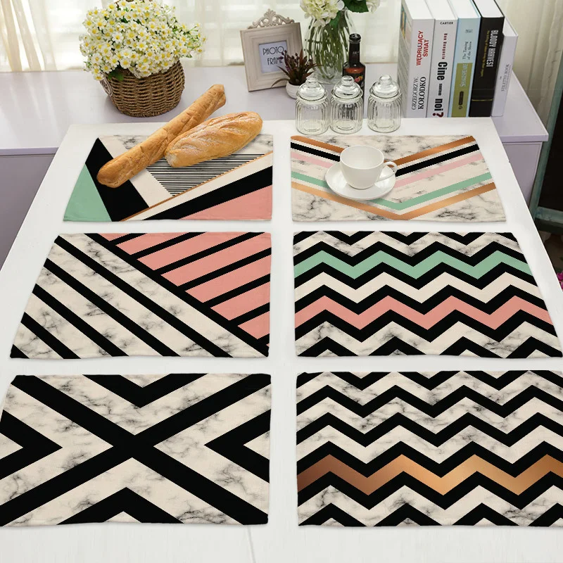Геометрический мраморный принт хлопковый и льняной кухонный коврик для обеденного стола подставки 42*32 см коврики для посуды домашний декор MG0028