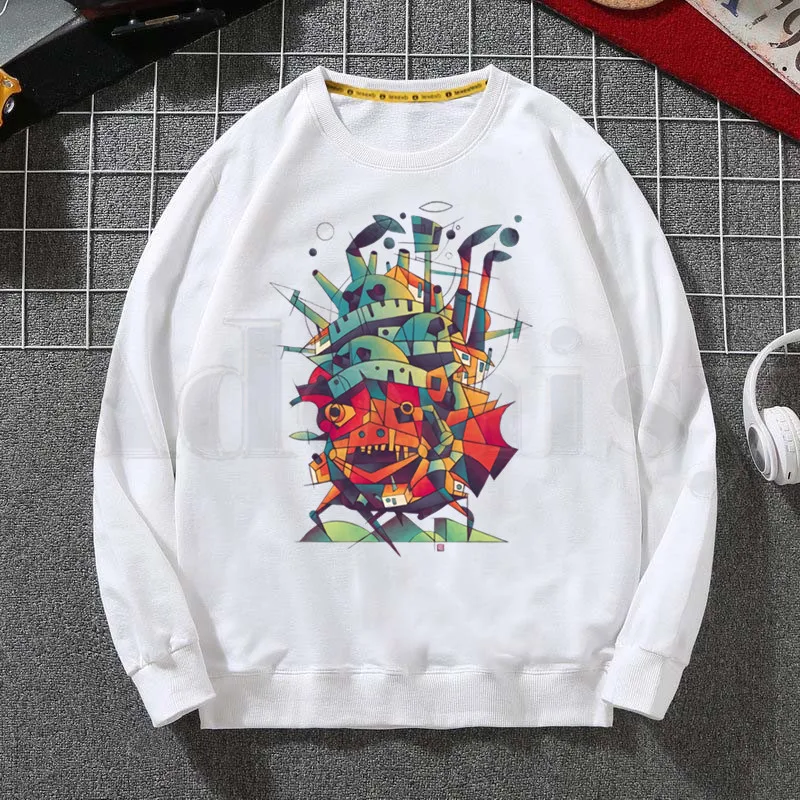 Толстовка мужская с круглым вырезом, милый свитшот с графическим пр...