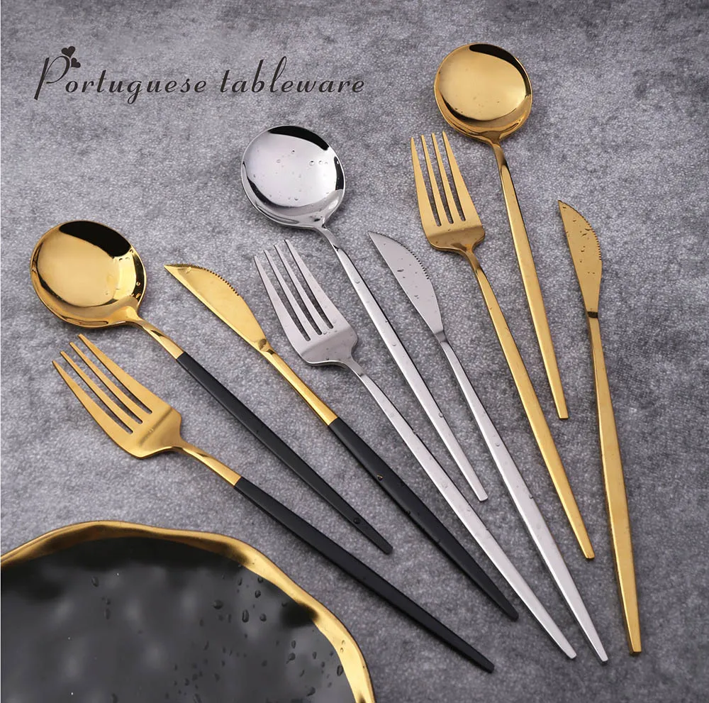Набор глянцевых золотых столовых приборов, столовая посуда из нержавеющей стали, десертная вилка, чайная ложка, нож, столовое серебро, кухонная посуда, столовые приборы, 36 шт.