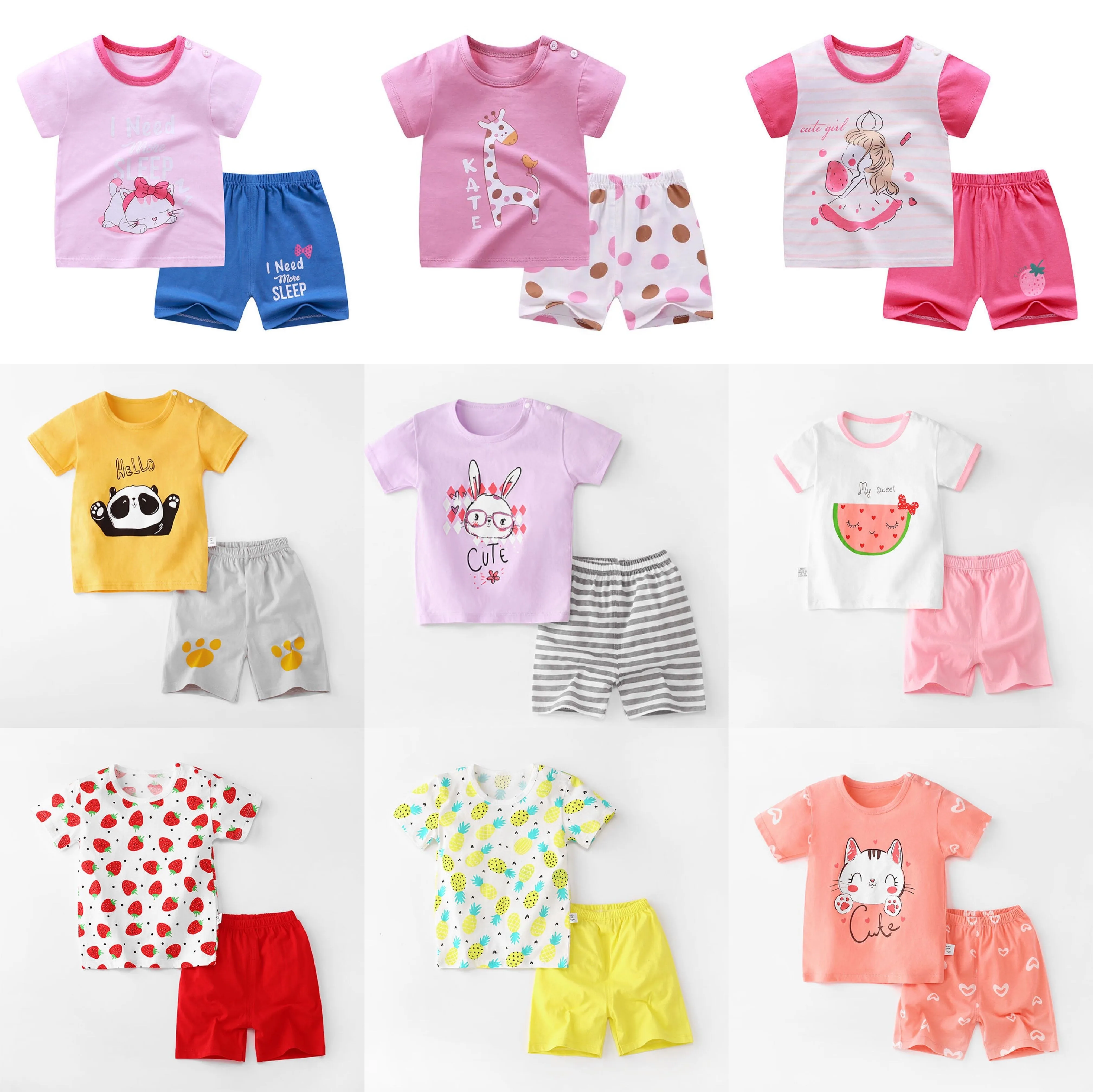 Комплекты одежды для маленьких девочек футболки, брюки костюм Детская летняя одежда с короткими рукавами детский костюм пижамы для девочек от 0 до 6 лет