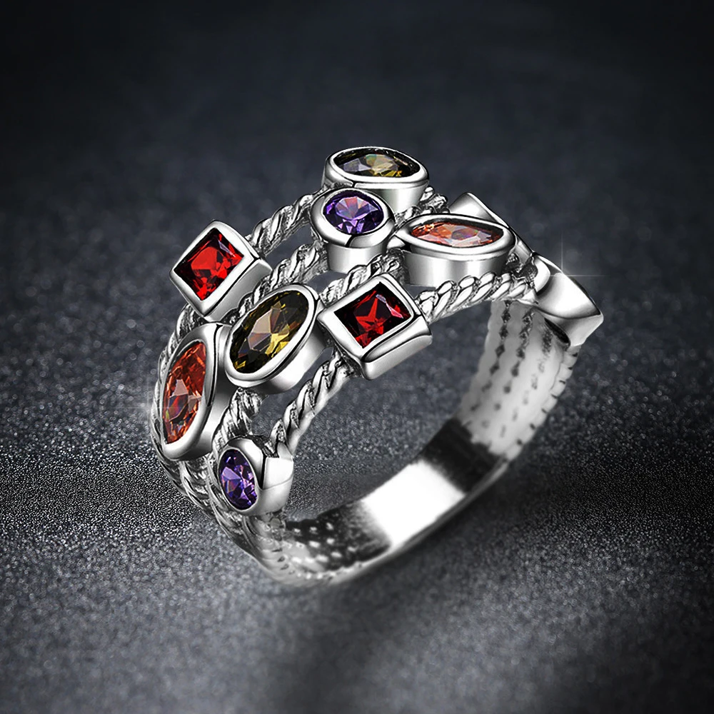 Многослойное разноцветное кольцо с кубическим цирконием для женщин,...