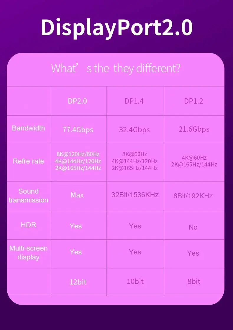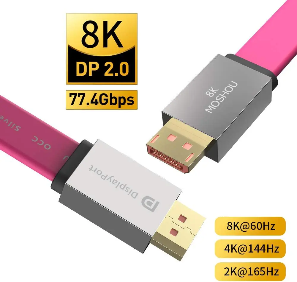 Moshou 8K DisplayPort 2,0 кабель 8K @ 60HZ 4K @ 144HZ120HZ 2K @ 165HZ144 hps 77,4 Gbps HDCP 2,2 HBR3 12Bit HDR DP 2,0 1,4 DP to DP кабель
