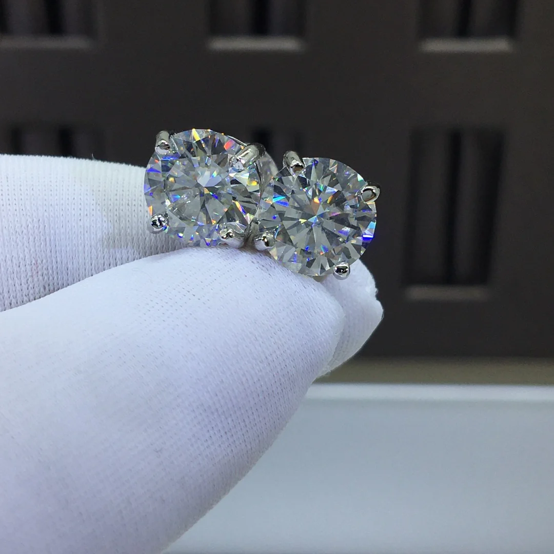 Серебро 925 Оригинал алмаз тест всего 4 карат D цветные Серьги с муассанитом бриллиантовая огранка драгоценный камень 4 коготь серьги-гвоздики подарок