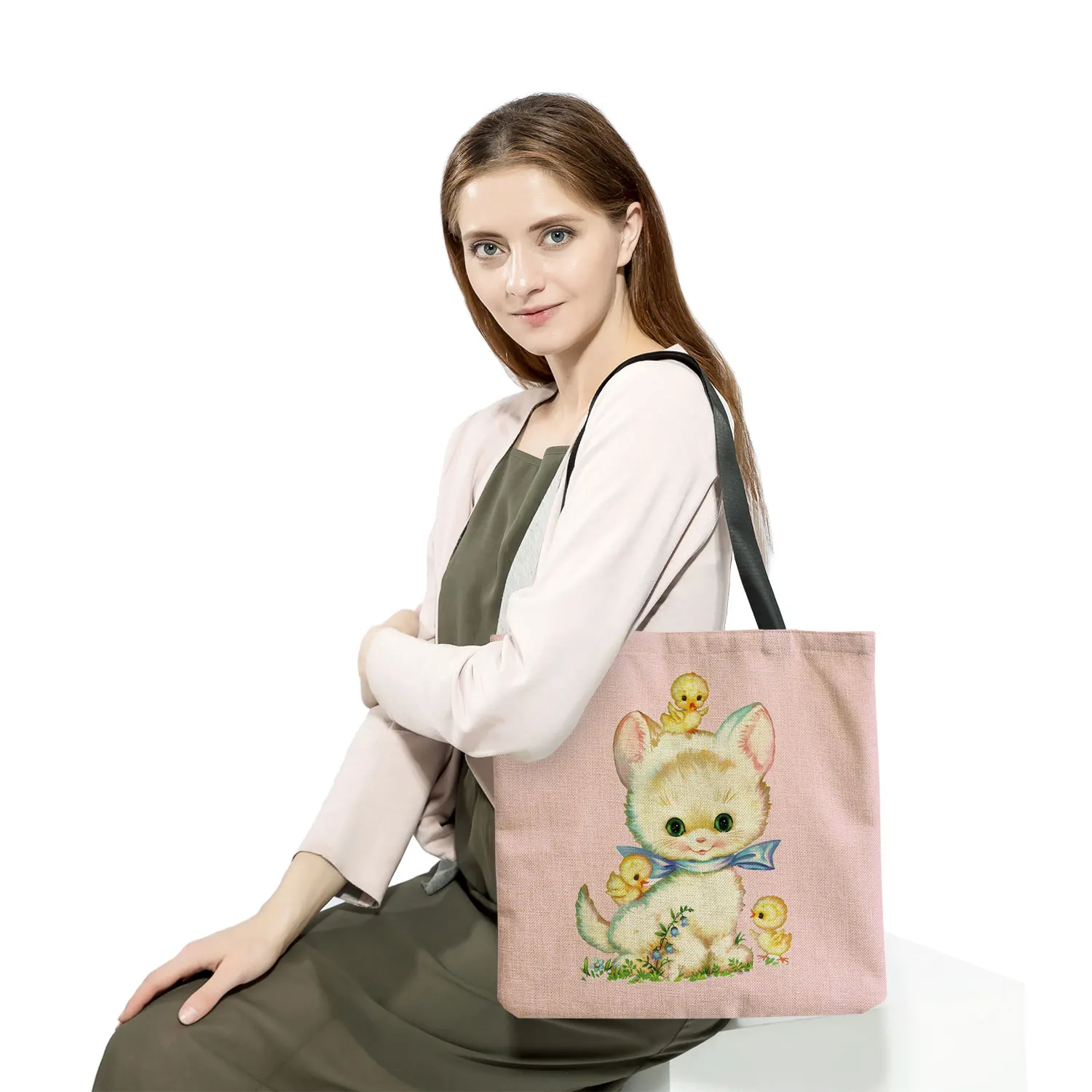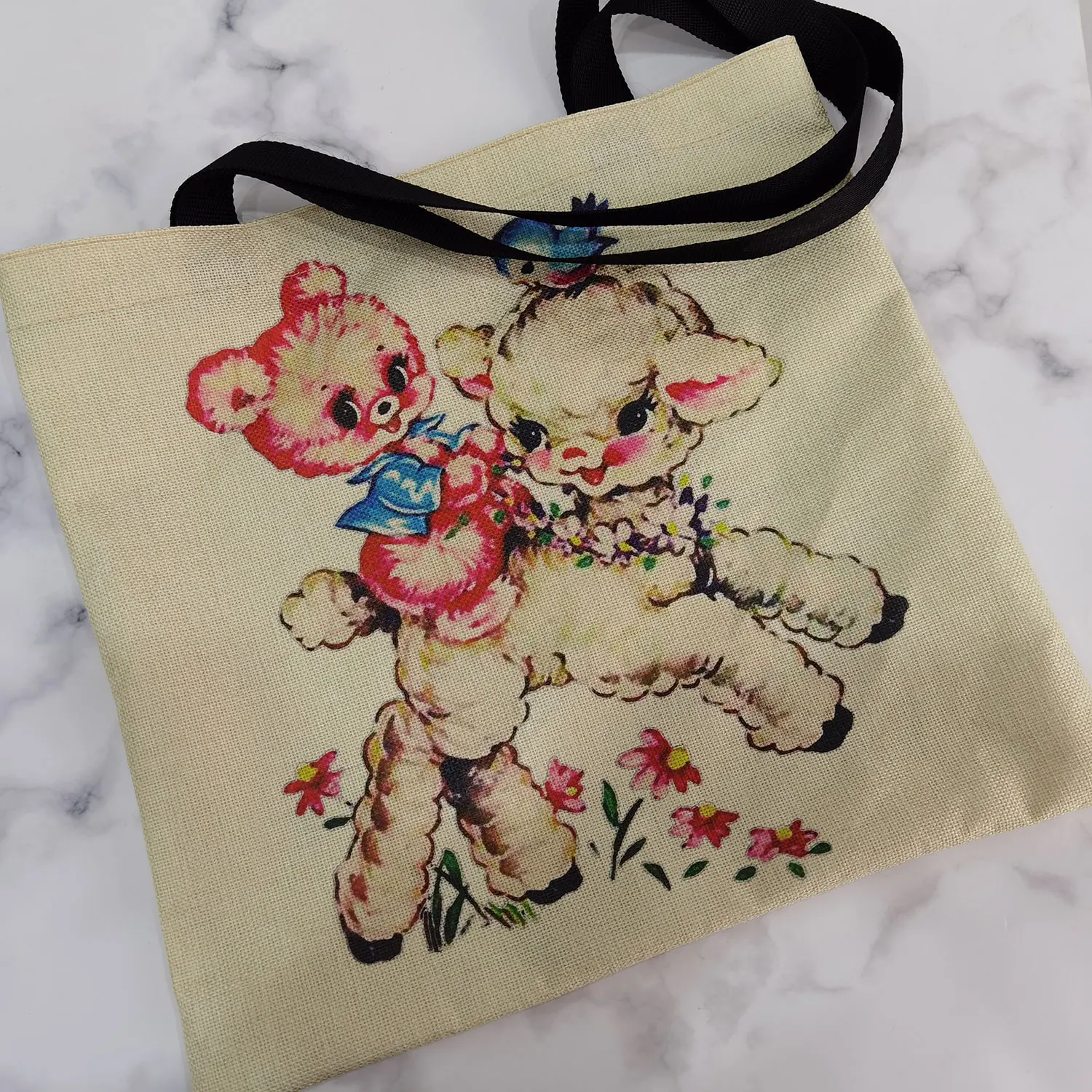 Портативная вместительная Черная Женская сумка-шоппер с овечьими цветами и мультяшным принтом, Индивидуальная сумка-тоут с милыми животными, простой Размер