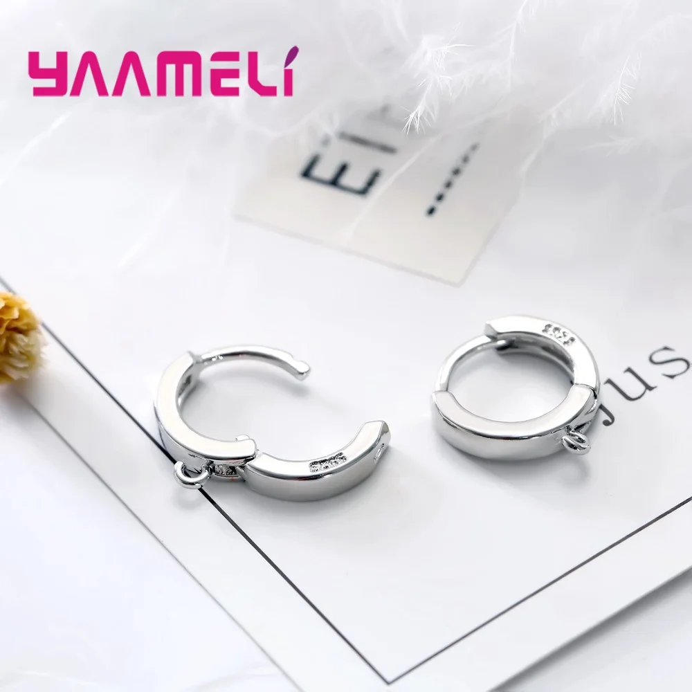 One Pair Smooth 925 Sterling Silver Jewelry Findings Small Circles Huggie Hoop Earrings Making Components Handmade DIY Accessory