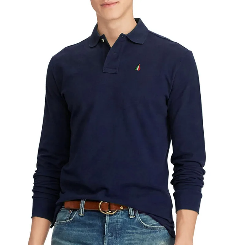 Рубашка-поло мужская с длинным рукавом, 100% хлопок