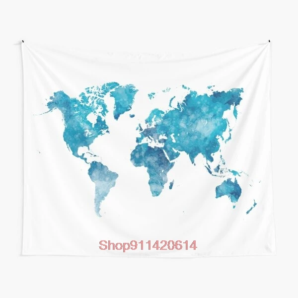 Гобелен с картой мира в акварельном стиле, гобелен для творчества, гобелен для дома, прикроватный декор, подвесной гобелен