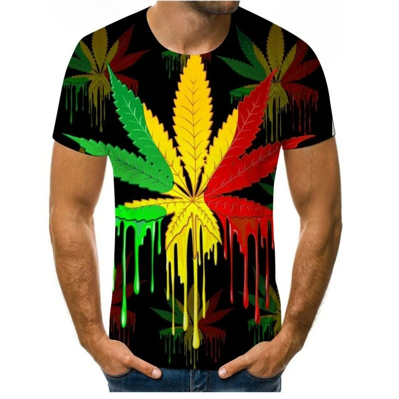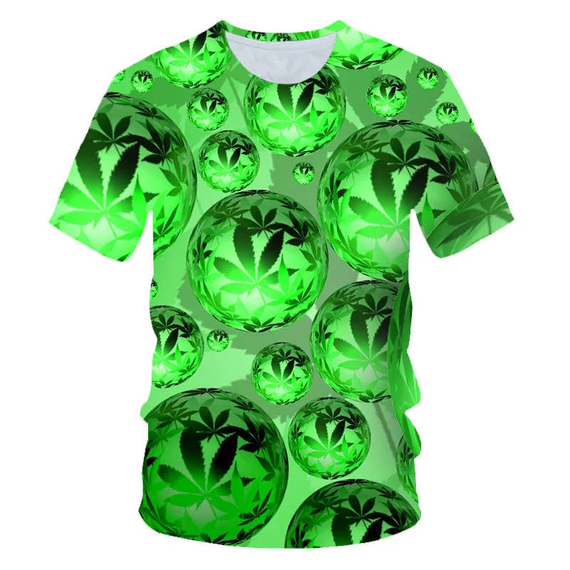 Мужская футболка с рисунком сорняка, зеленая футболка с листьями, М...