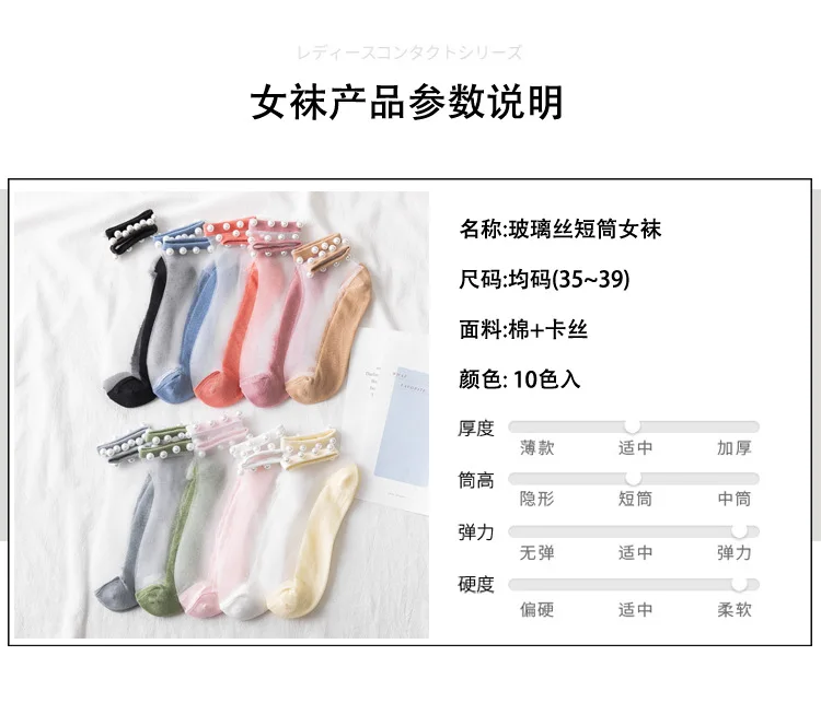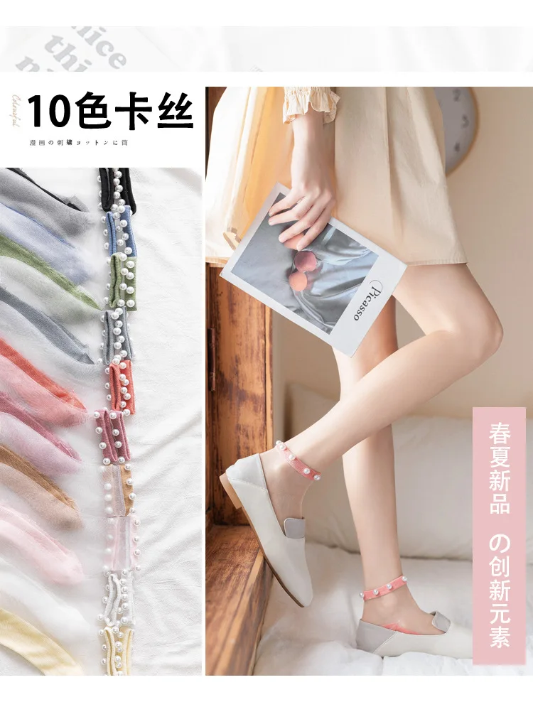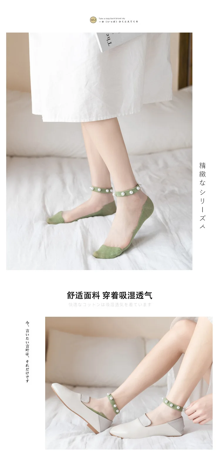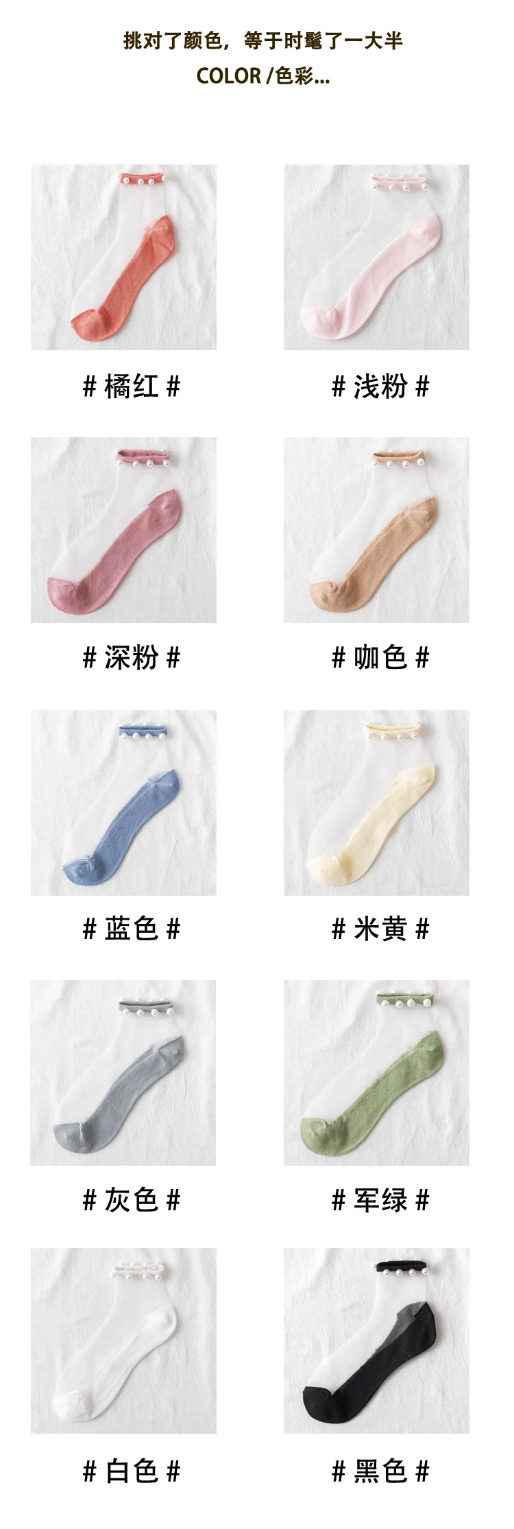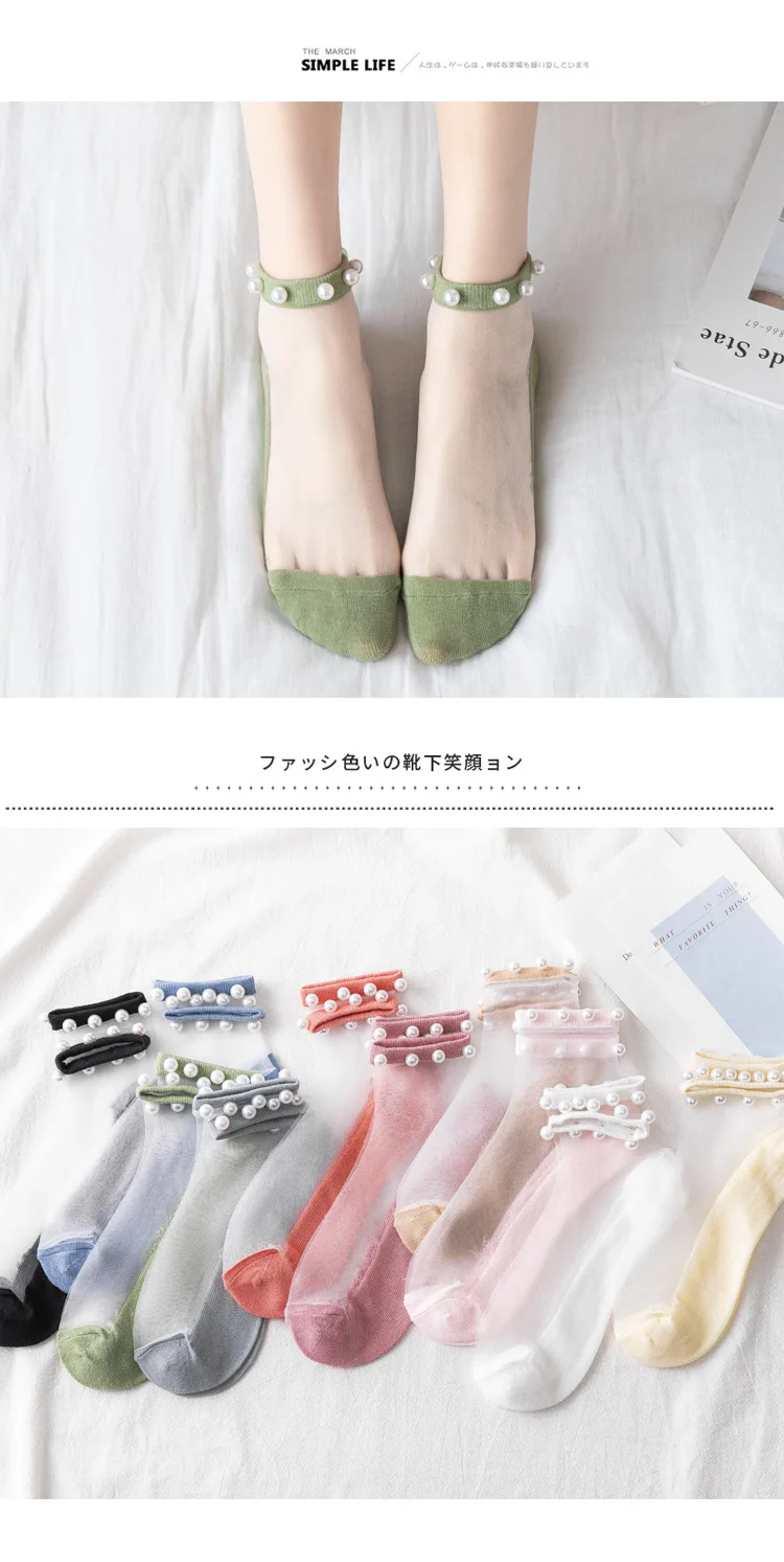 Носки женские прозрачные с жемчугом, тонкие Дышащие Короткие одното...
