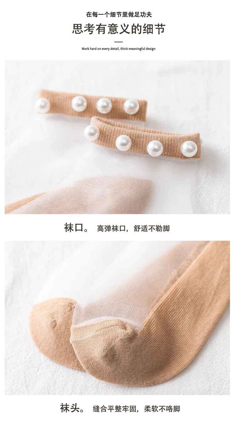 Женские Прозрачные шелковые носки с жемчугом, тонкие хлопковые носк...