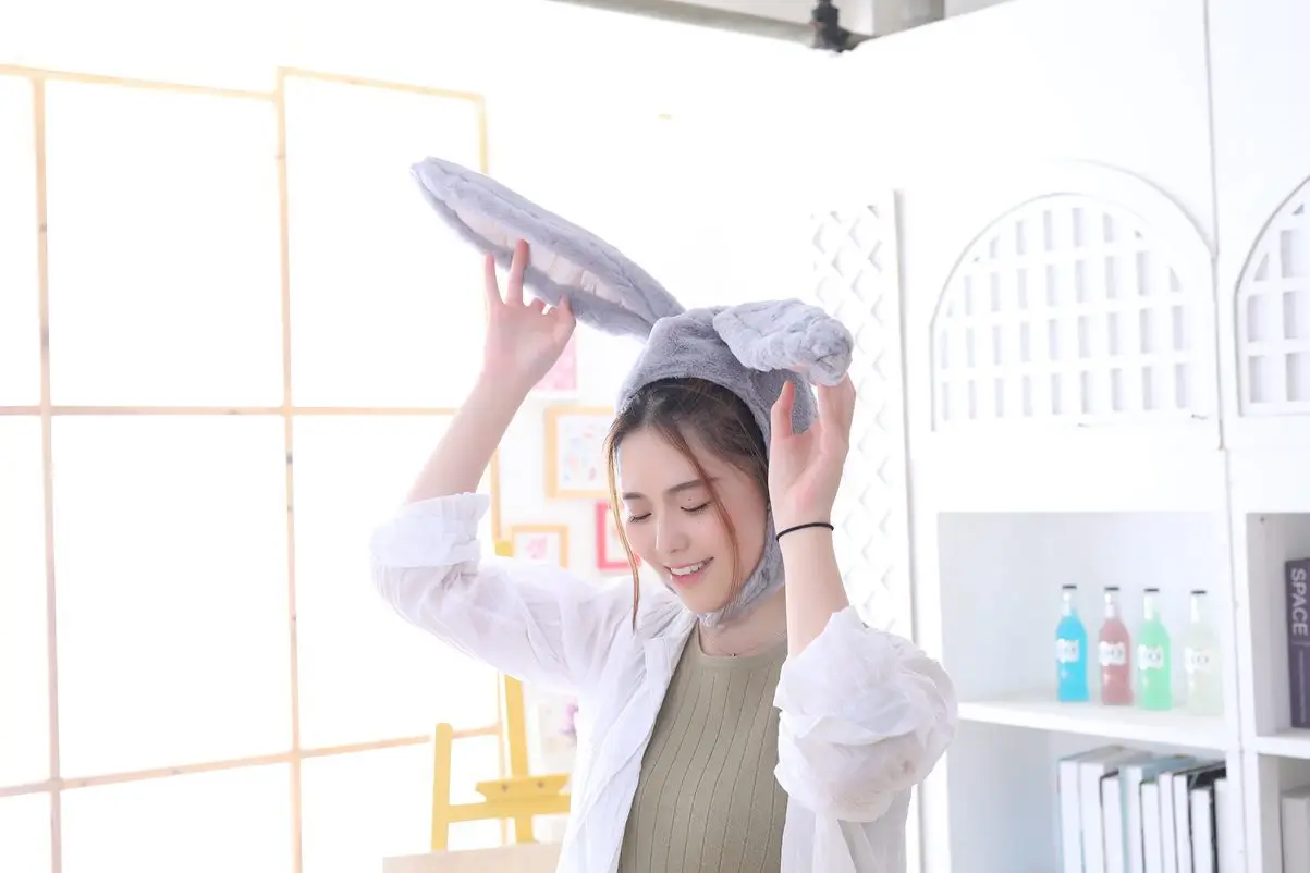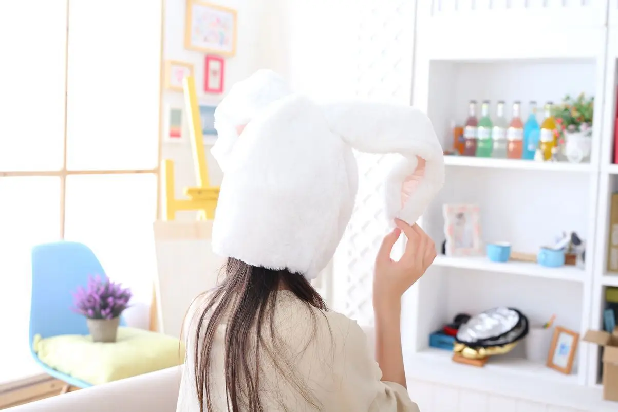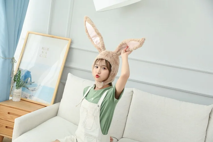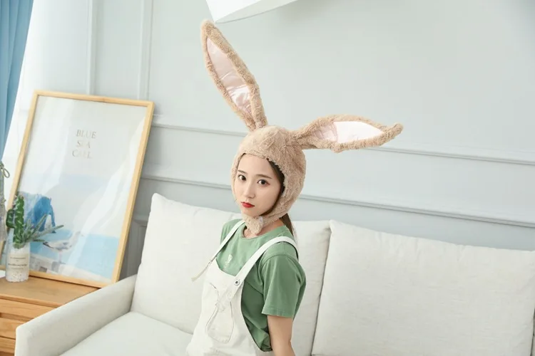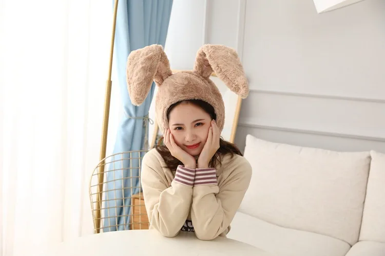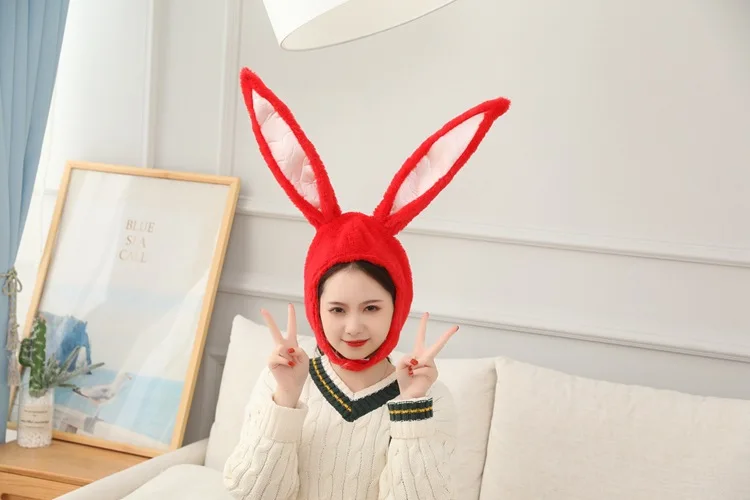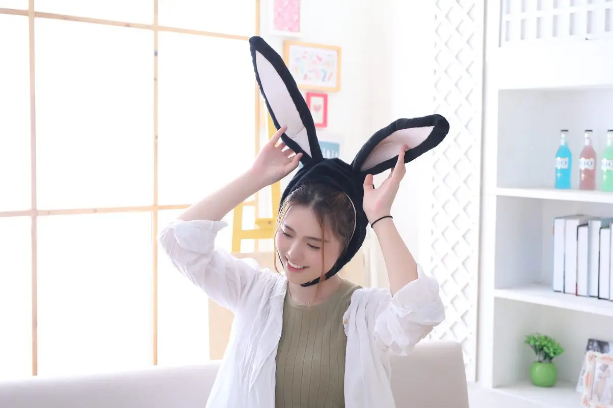 Милая плюшевая шапка в виде зайцевидных ушек кролика, обогреватель для головы, товары для фотосъемки, шапка с ушами, белая, черная искусственная женская шапка для девушек