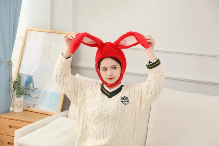Милая шапка для девочек, плюшевый кролик, заячьи ушки, шапка с науш...