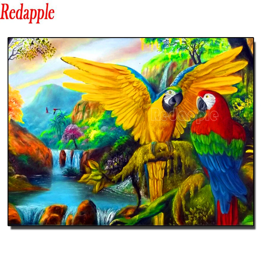 Полноформатная круглая алмазная живопись, Цветная Мозаика в виде попугая, алмазная вышивка крестиком, животное, птица, украшение для дома, хобби, подарок