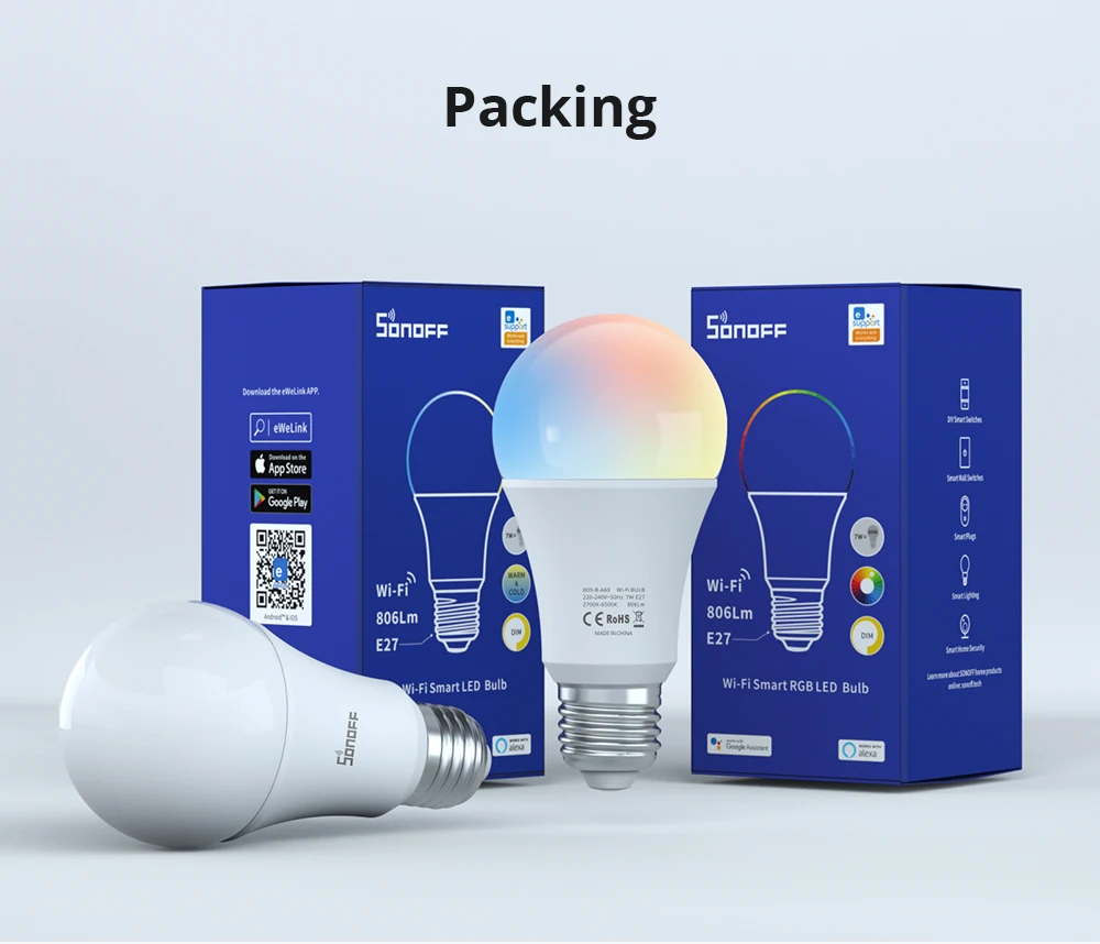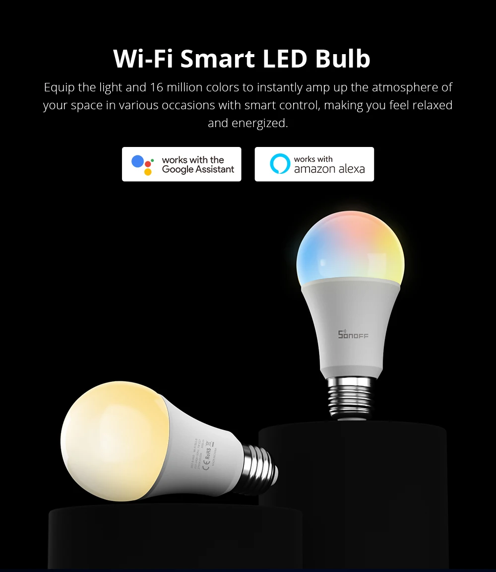 Умный светодиодныйЛампы являются еще более умными в домашней автоматизации, и они довольно просты в использовании. Просто вкрутите умную лампу в лампу, соедините ее со своим смартфоном, и вы больше не будете вставать с кровати, чтобы ударить светильник-переключатель. Светодиодный смарт-лампочка SONOFF также поддерживает Автоматический триггер, который автоматически включается или выключается, когда вы нажимаете на дверь, просто подключите датчик SONOFF DW2-Wi-Fi к двери.Даже вы можете установить лампу, чтобы включить или выключить дверь с датчиком SONOFF DW2-Wi-Fi двери. Светодиодный смарт-лампочка SONOFF позволяет вам тускнеть и настроиться на разную цветовую температуру через скольжение панели в приложении. Он имеет широкий диапазон яркости от 2700K до 6500K, который достаточно яркий для почти любого пространства для использования. Работает с третьей вечерние умных помощников из поставляется через поддержка Alexa и Google Home, так что вы можете контролировать лампочку, регулировки яркости и цвета, используя ваш голос. Умная лампа 7 Вт может производить 60 ВАТТ эквивалент 806 люмен, чтобы снизить на электроэнергию значительно. Кроме того, он был надежным с расписанием времени, что делает лампу автоматически включаться и выключаться в установленное время дня. Лампочка также поставляется с восемью дополнительными заданными режимами сцены, которые позволяют мгновенно получить доступ к окружающей среде, которую вы хотите повысить. Если вы получите множество SONOFF умный светодиодный ламп, группа-функция управления-это очень удобно для вас, чтобы включать и выключать вместе, настройте всю цветовую температуру и яркость на один и тот же уровень, нажав на приложение.Если вам нужно больше цветов в вашем пространстве, подумайте о B05-B-A60 умной светодиодной лампе RGB; Если нужны Двойные Цвета, B02-B-A60-хороший выбор.Примечание: рабочий вход этой лампы составляет 220-240 В переменного тока 50 Гц. Пожалуйста, подтвердите перед покупкой.