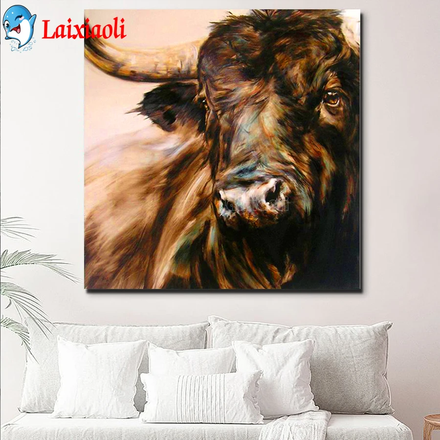 Алмазная вышивка бизон, бык, Як, квадратная круглая Алмазная вышивка, животное, корова, вышивка крестом, мозаика для домашнего декора