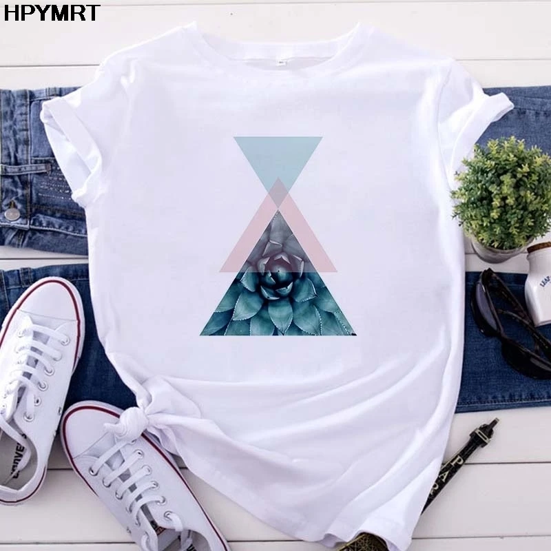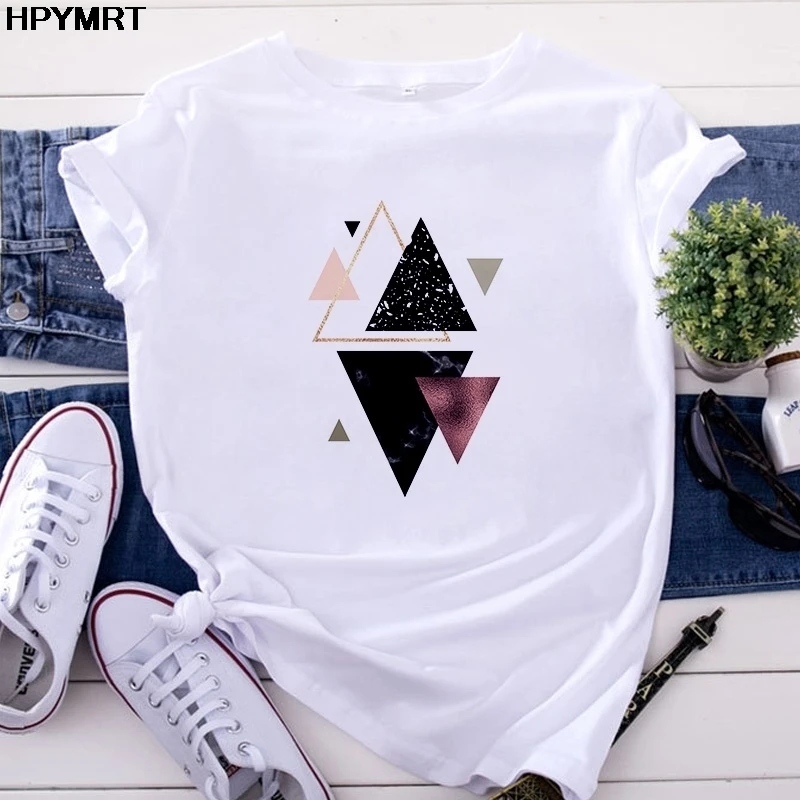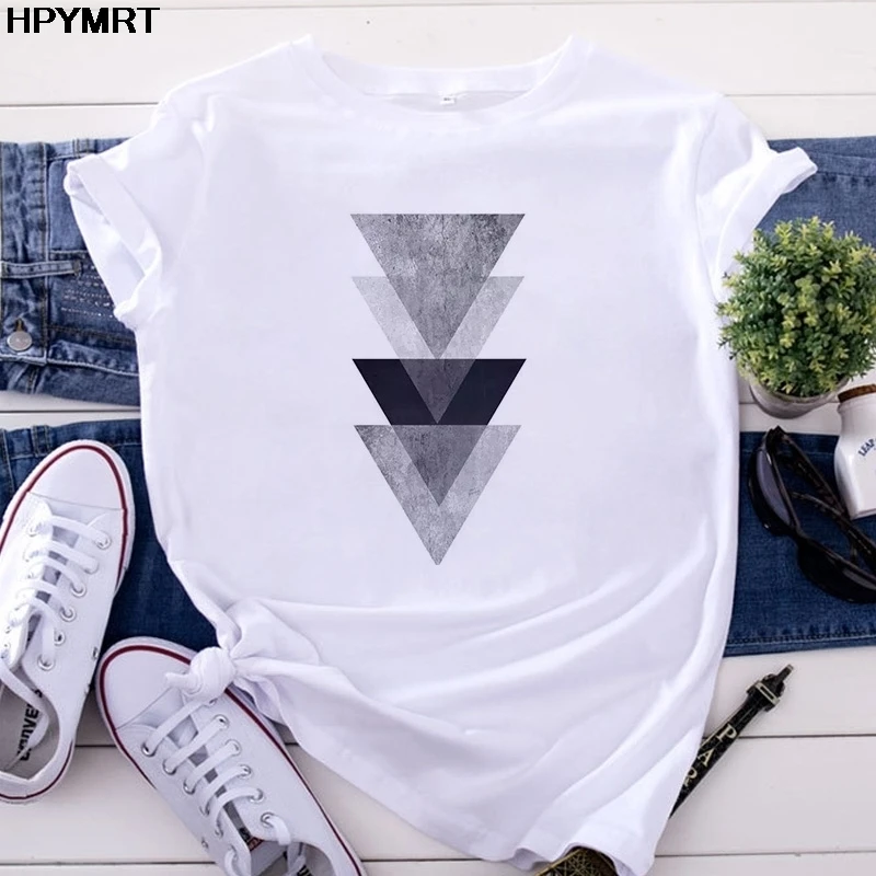 Футболка женская с геометрическим треугольным принтом, забавный Пов...