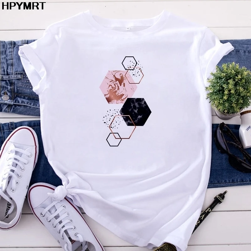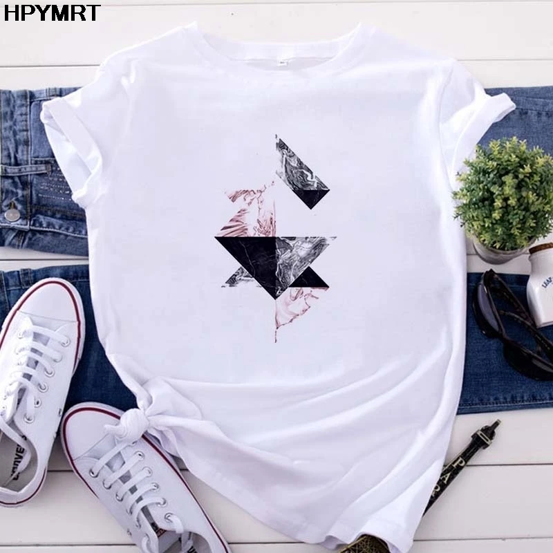 Женская футболка с геометрическим принтом, с круглым вырезом и коротким рукавом