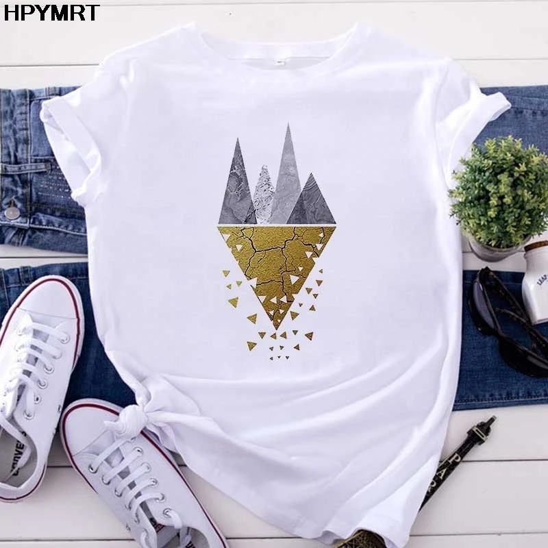 Летние топы; Эстетическая Футболка с принтом горы; Женская Винтажна...