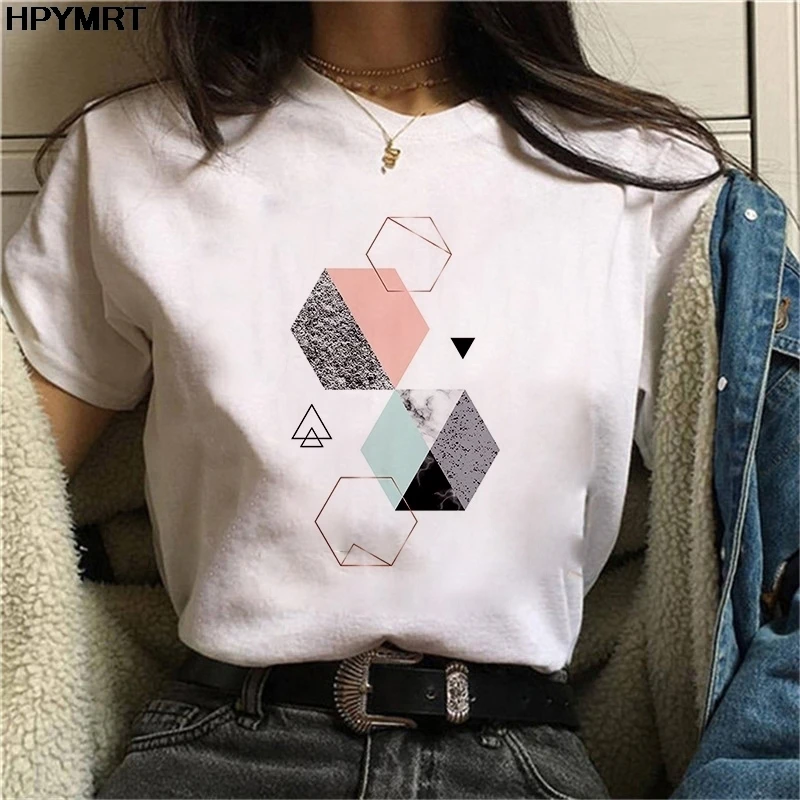 Футболка женская в стиле Харадзюку, с геометрическим принтом