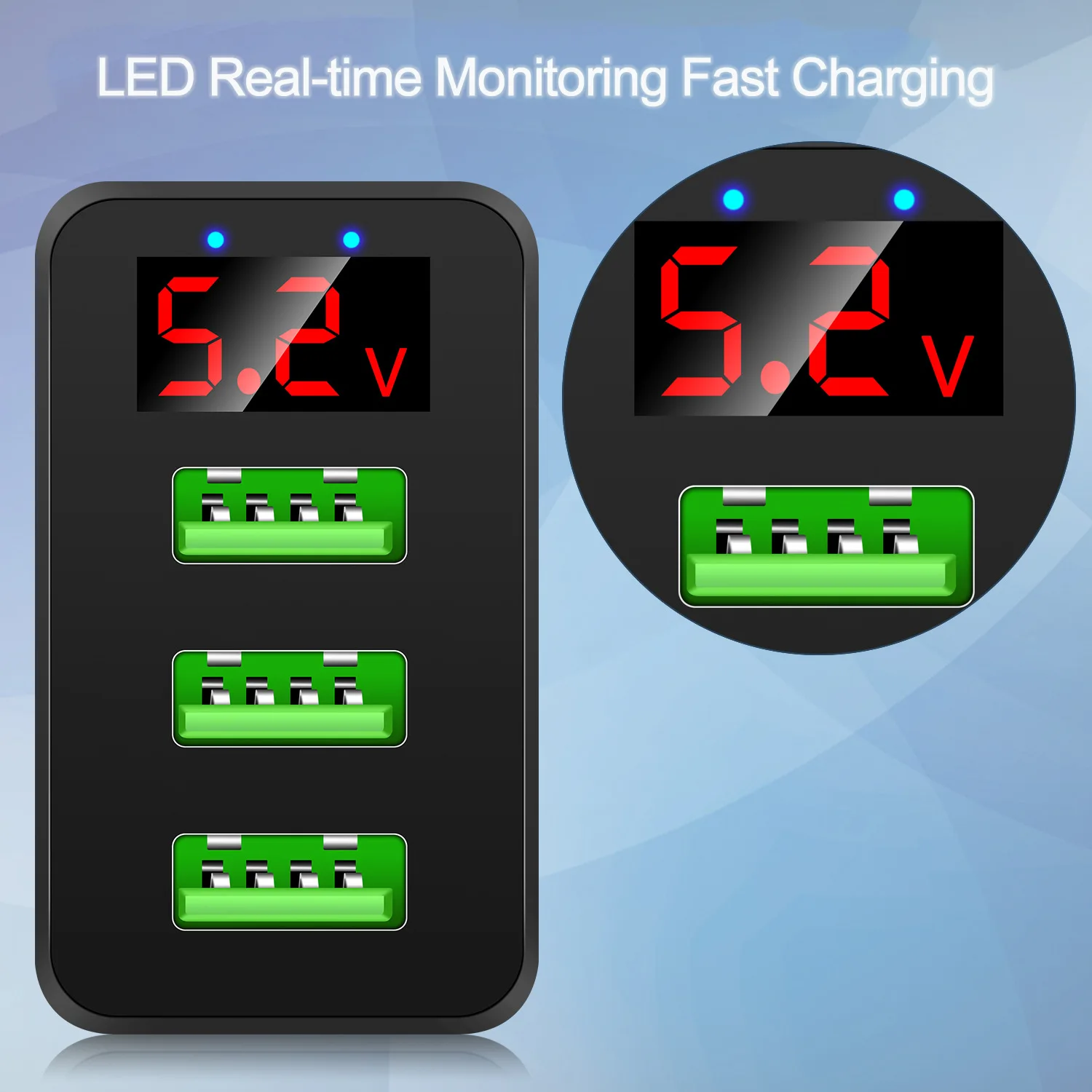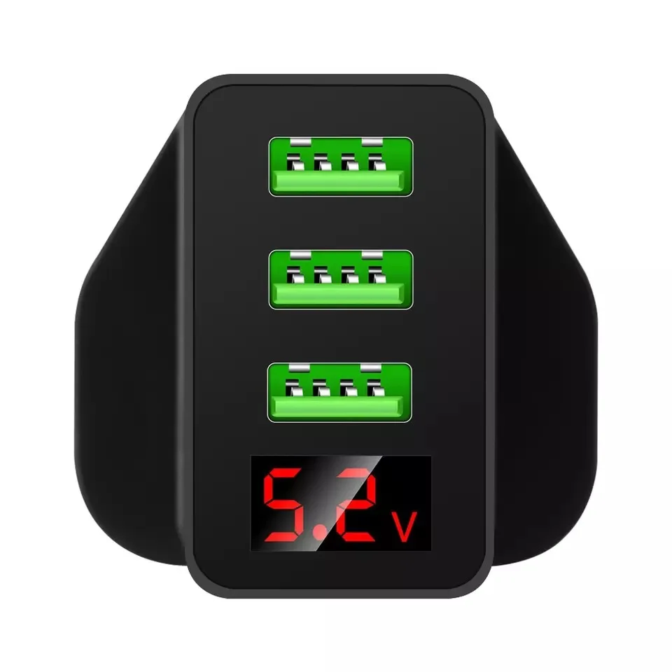 Название продукта: зарядное устройство с цифровым дисплеем 3USB мобильный телефон, дорожная зарядка Материал: АБС Напряжение тока: AC100-240V 50-60 Гц цвет изделия: белый, черный Размер и Вес: 25*70*40 мм американский стандарт 39 г Европейский стандарт 41 г Английский стандарт 42 г (без веса) Характеристики изделия: европейский стандарт, американский стандарт, размер упаковки: 80*160*30 Мм выход продукта: 110-240 В, 5 В, 3,1 a схема синхронного выпрямления (управление схемой IC, стабильный выход, высокая эффективность зарядки, интеллектуальный шунт для защиты зарядки) один порт использует USB = 2,4 a Совместимость с продуктами: большая часть рынка для смартфонов и других цифровых продуктов