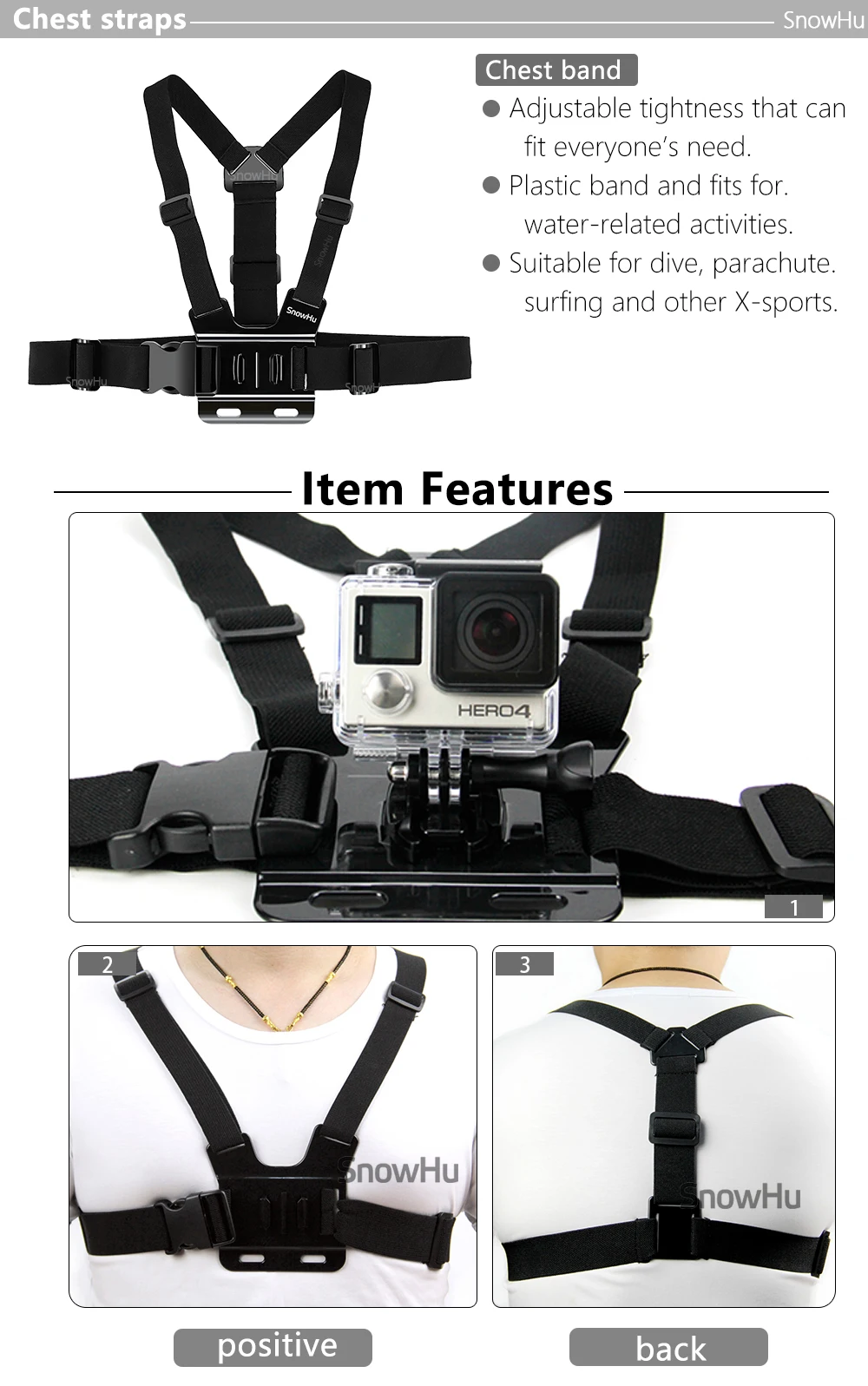 Аксессуары SnowHu для Gopro нагрудный ремень безопасный держатель Gopro Hero 10 9 8 7 6 5 + для экшн-камеры Yi 4K eken GP27