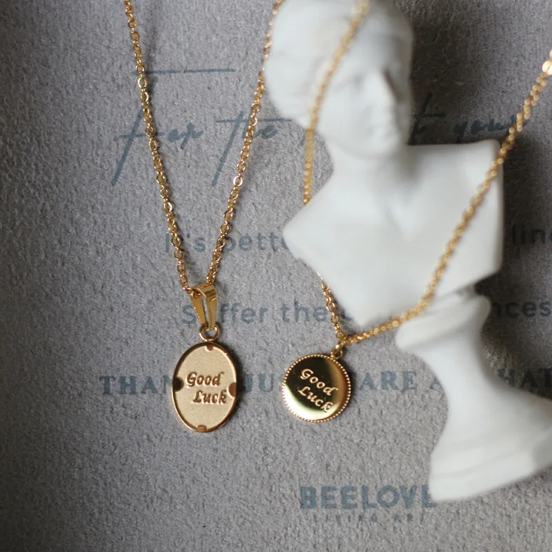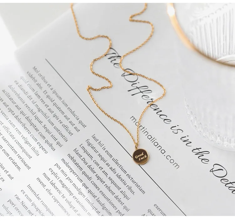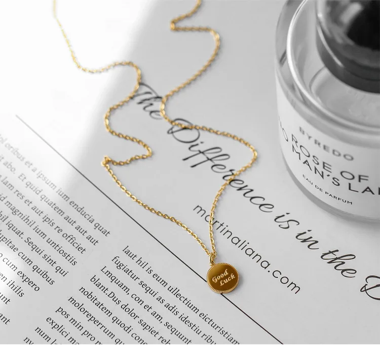 Ожерелье с круглым кулоном на удачу, нержавеющая сталь 316 L ожерелье, позолота 18 карат, модный подарок для женщины, девушки, аксессуар, оптовая продажа