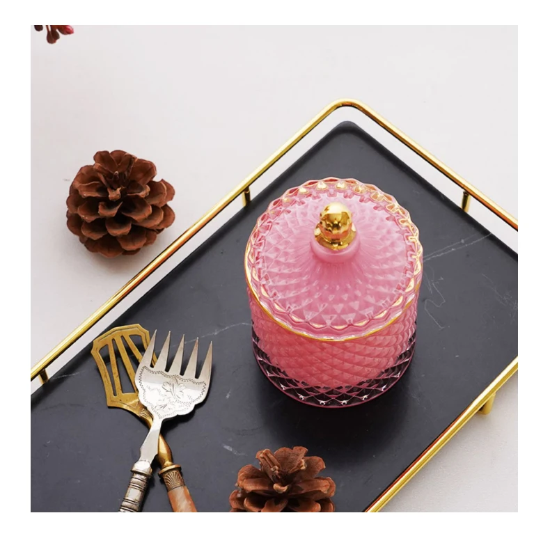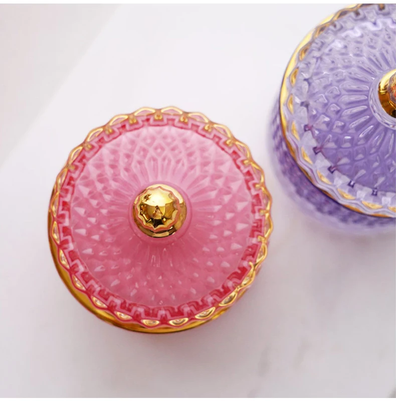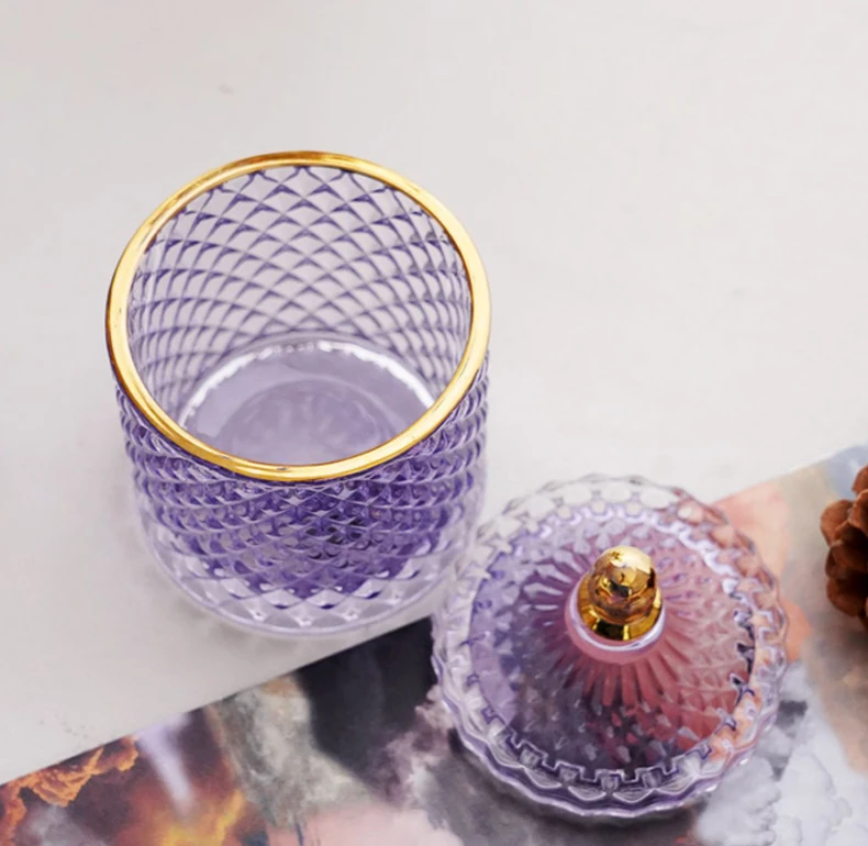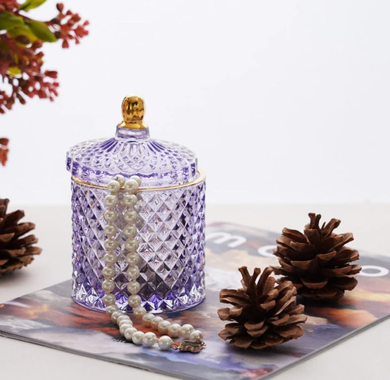 Разноцветная стеклянная баночка с бриллиантами и крышкой, в скандин...