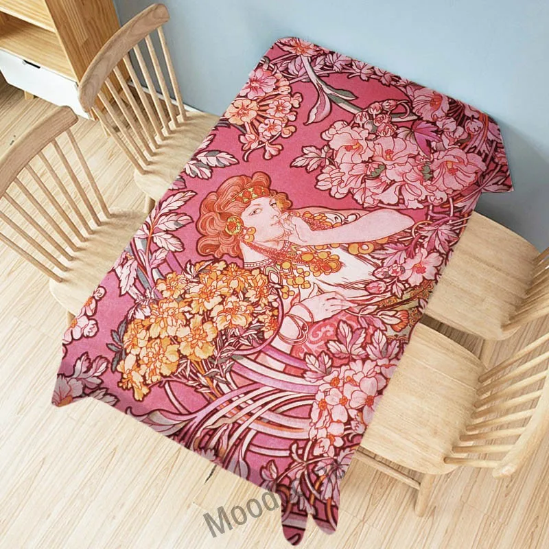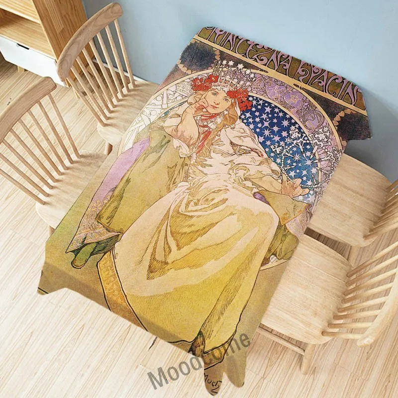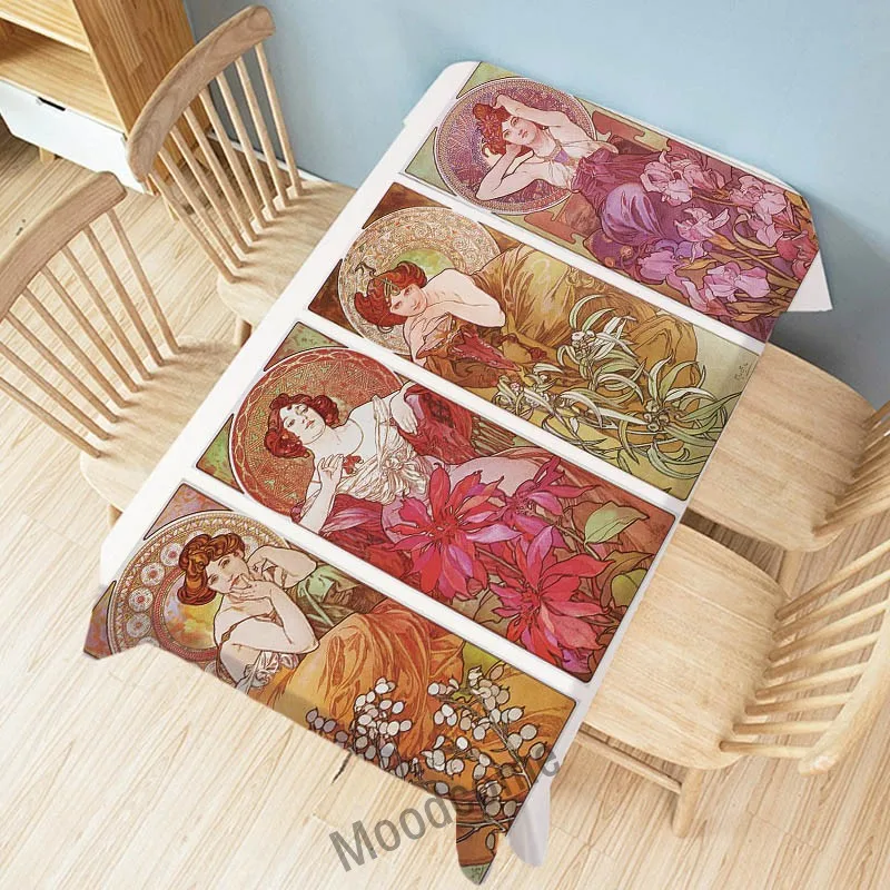 ВИНТАЖНЫЙ ПЛАКАТ стильный Альфонсе мухи принцесса ангел цветочный девушка гобелен водонепроницаемый Скатерть для стола новый художественный Ретро Чехол для стола