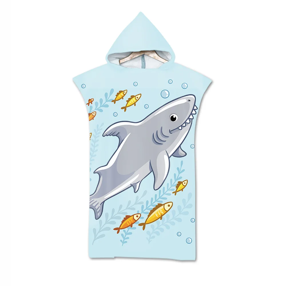 Пляжное полотенце с капюшоном и принтом рыбок из микрофибры для взрослых, быстросохнущее пончо для бассейна, банное полотенце с плащом, банный Халат