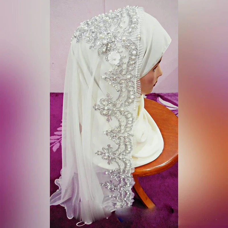 Фата невесты с аппликацией из бисера, Сказочная Арабская, мусульманская, Дубай, саудовские, арабские, свадебные аксессуары для особых случаев, хиджаб с кружевом