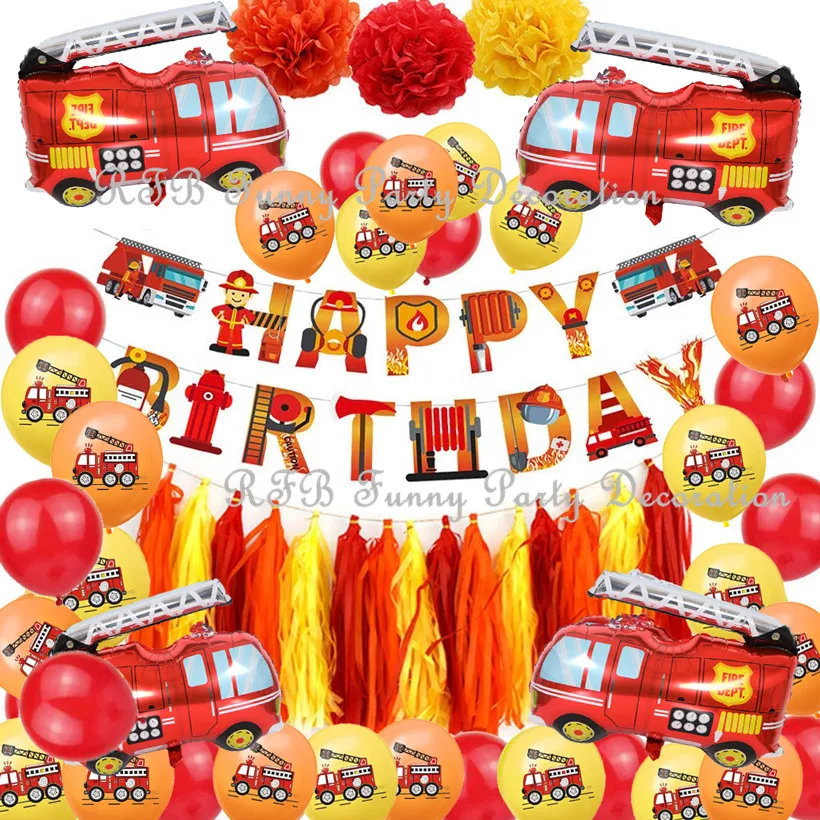 Пожарная машина, украшение для дня рождения, пожарный, пожарный, ба...
