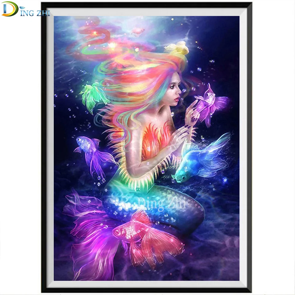 Diy 5D алмазная живопись красочная Алмазная вышивка "Русалка" Золотая рыбка Картины Мозаика домашний декор комнаты вышивка крестиком полное сверло