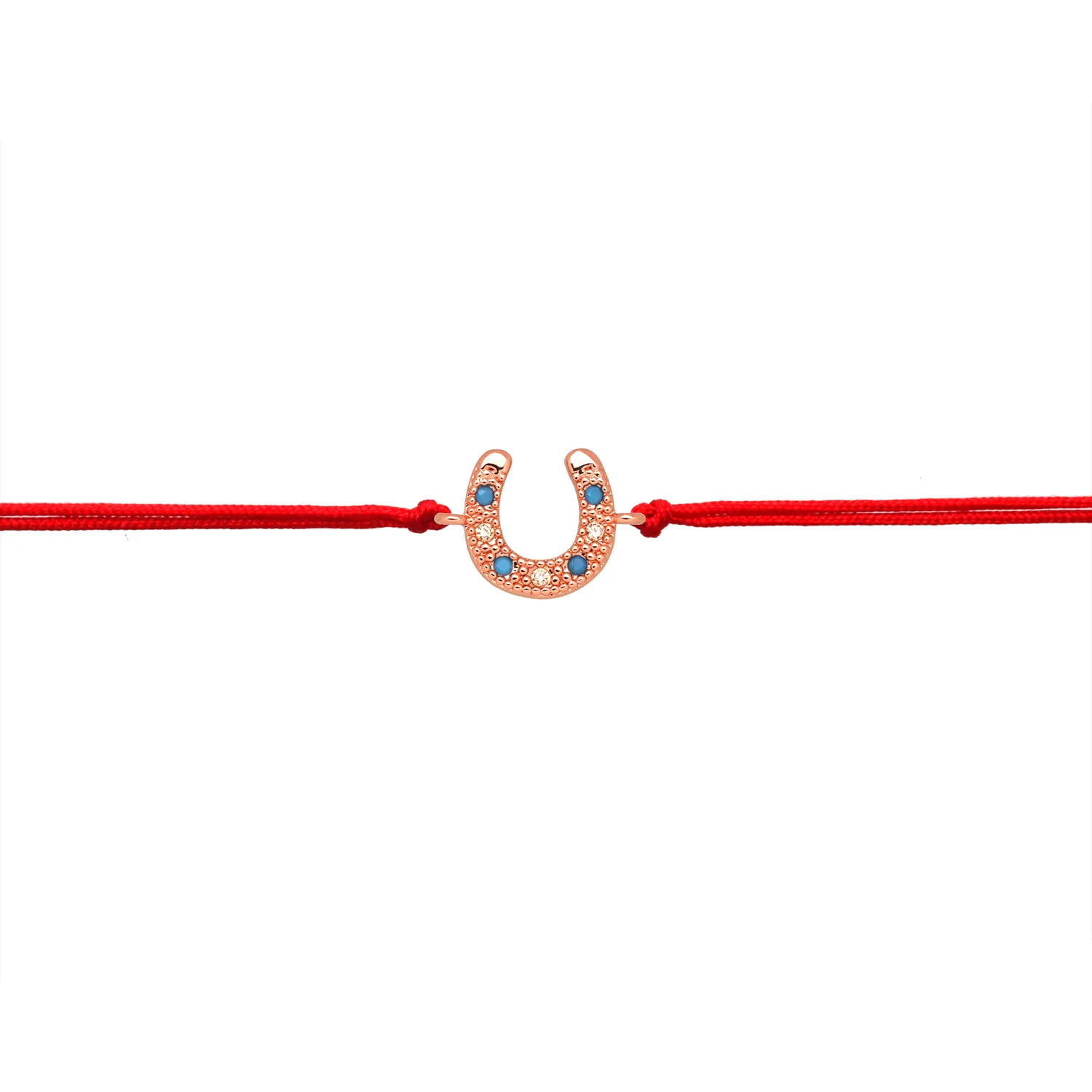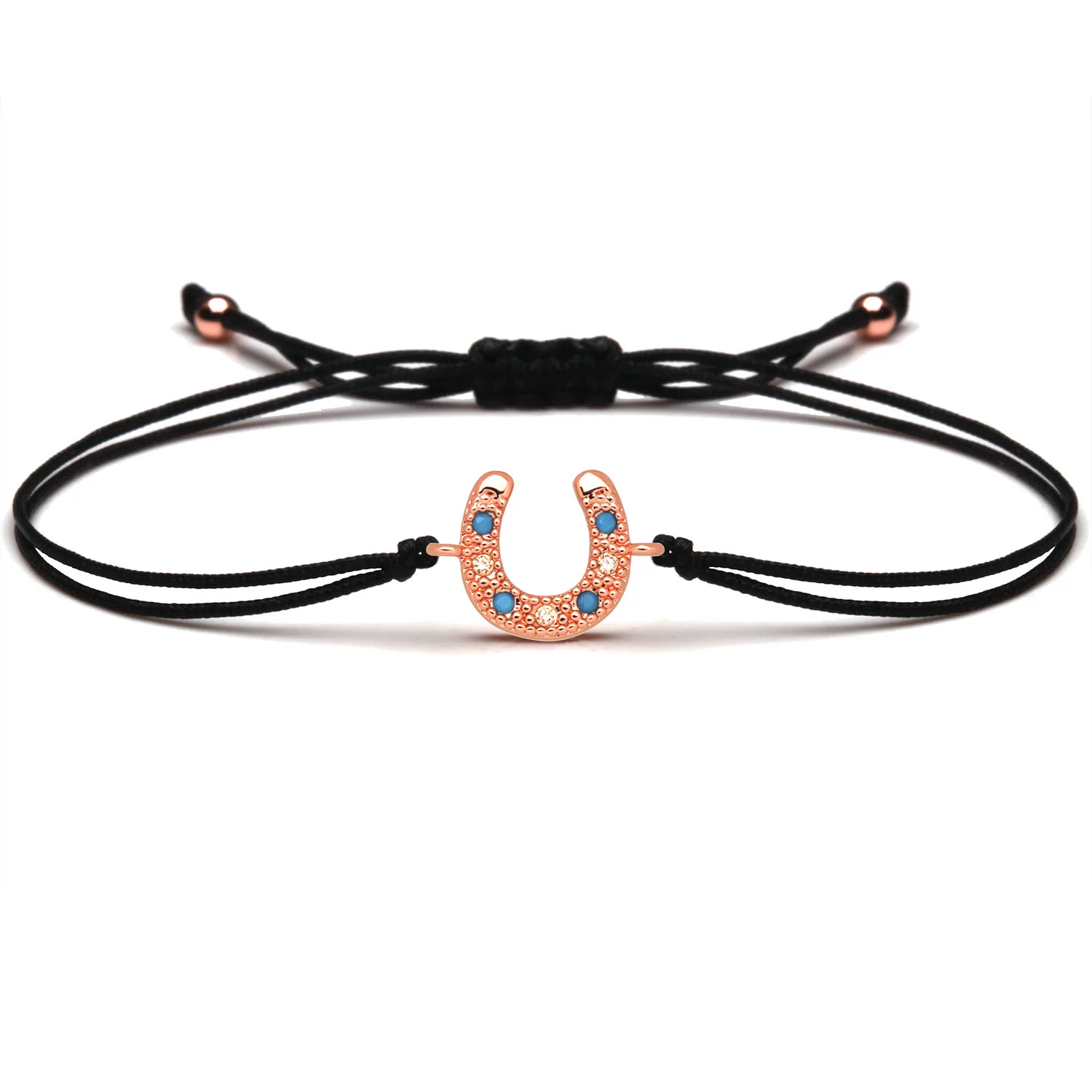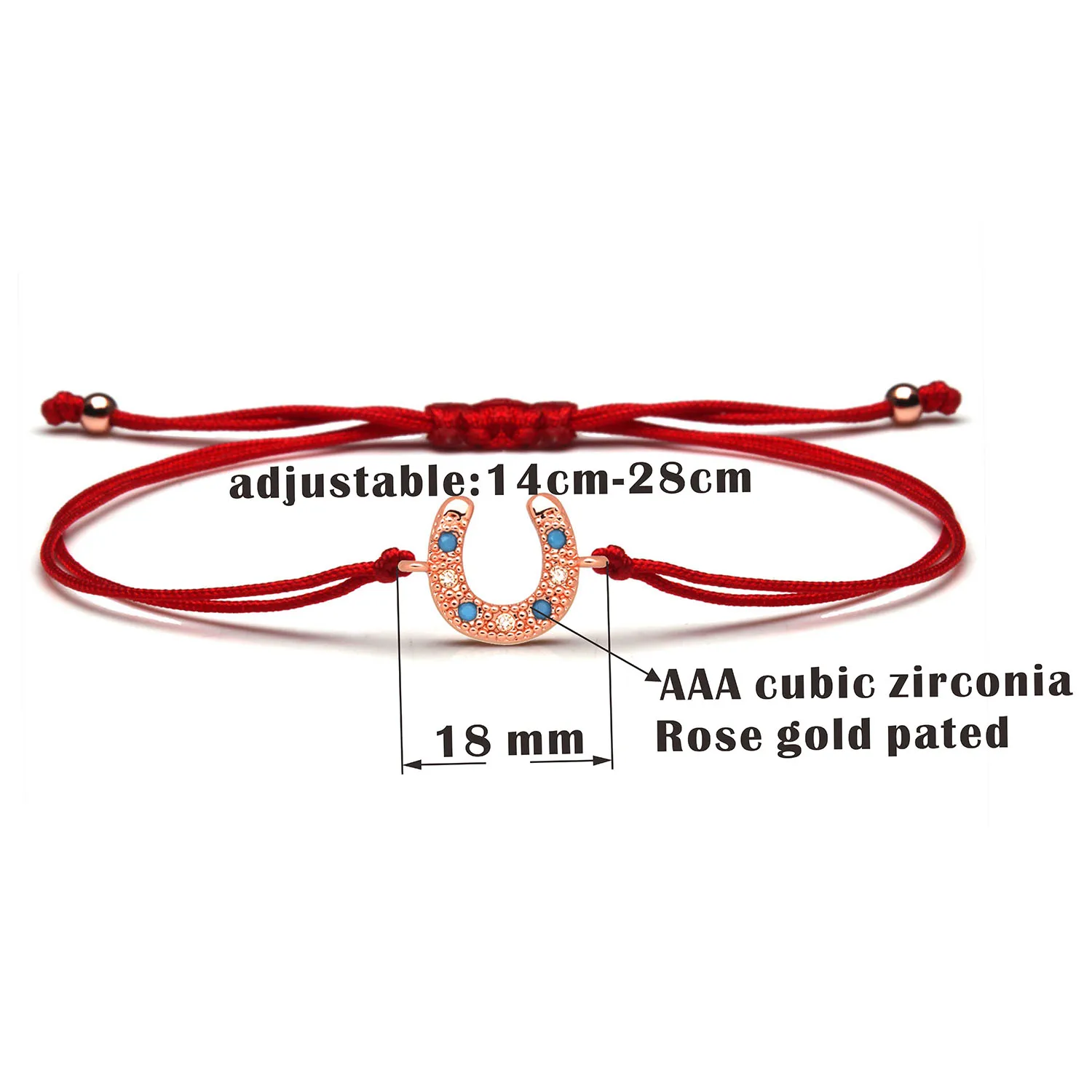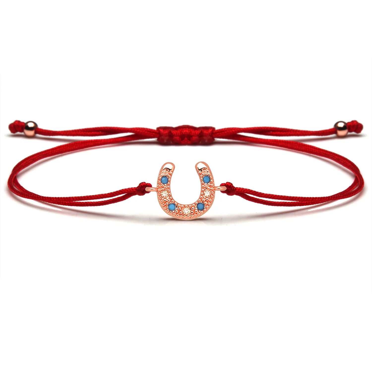 ААА кубического циркония розово-золотистыми латунными зубцами и счастливая подкова очарование браслет ручной работы для женщин 2021 Горячая Мода CZ Красная Нить украшения подарок