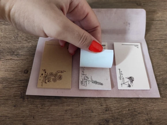 Прикольные бумажки. Они очень малюсенькие, для каких-нибудь милых заметок отлично подойдет. Они без клеющей основы сзади.