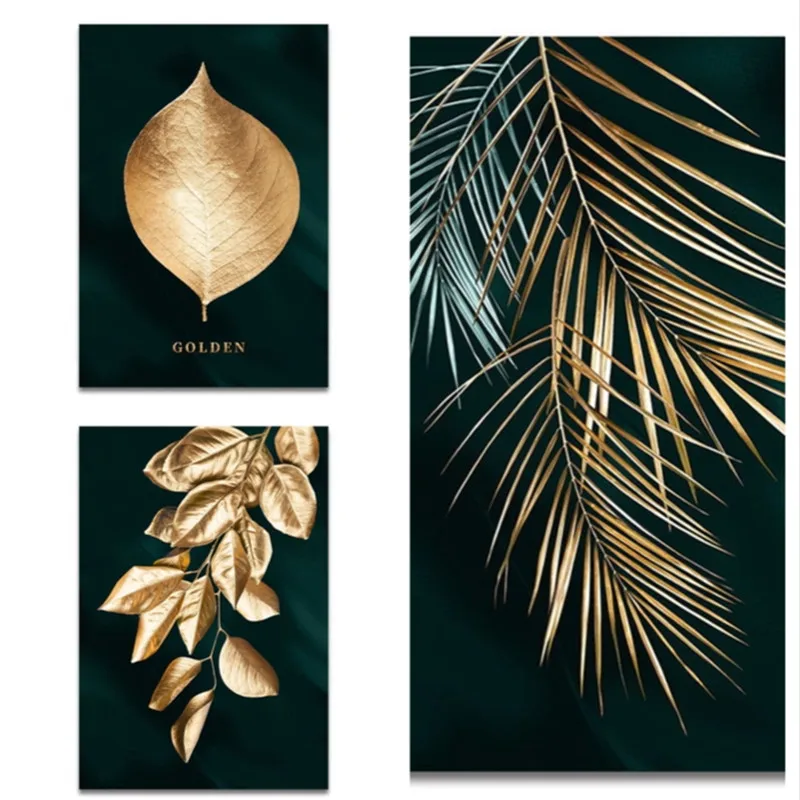 Растение золотой лист холст настенная живопись настенное украшение