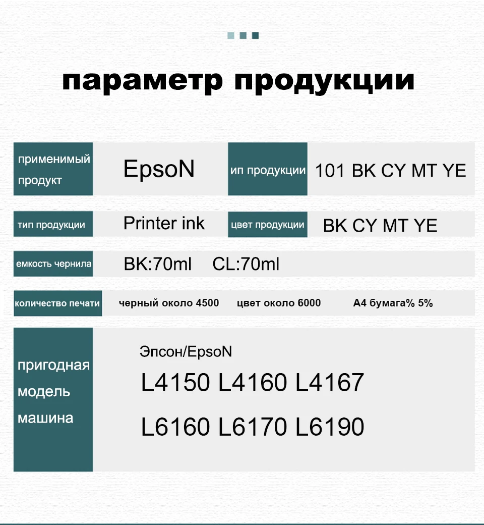 Чернила для принтера epson, для Epson l4150 l4160 l4167 l6160 l6170 l6190, краска для принтера Epson чернила epson 101
