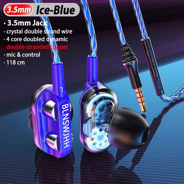 Двойной динамик, проводные наушники, гарнитура для iPhone, Xiaomi, ...