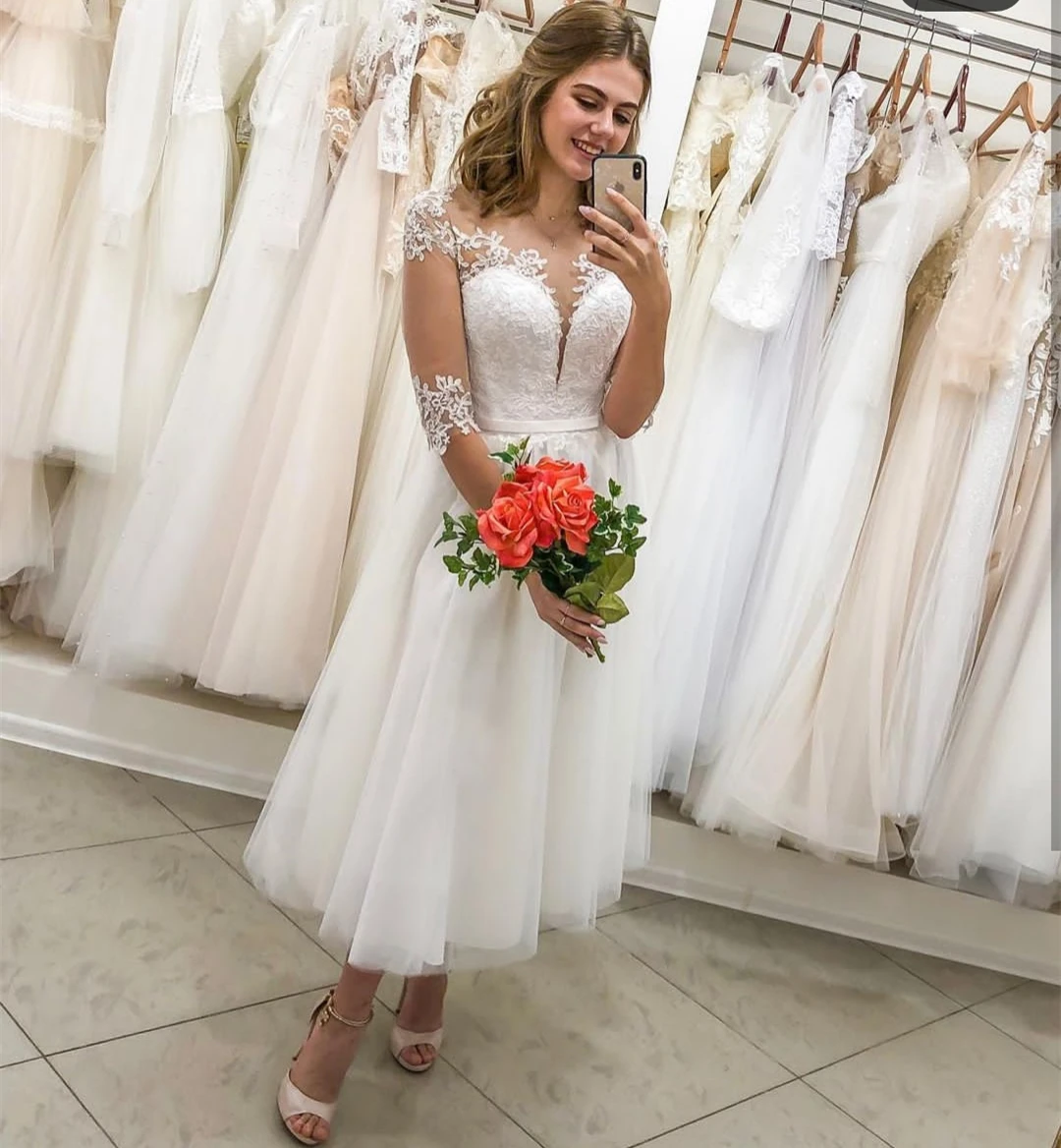 Женское Свадебное Платье До Колена, ТРАПЕЦИЕВИДНОЕ кружевное платье принцессы, модель 2022 года