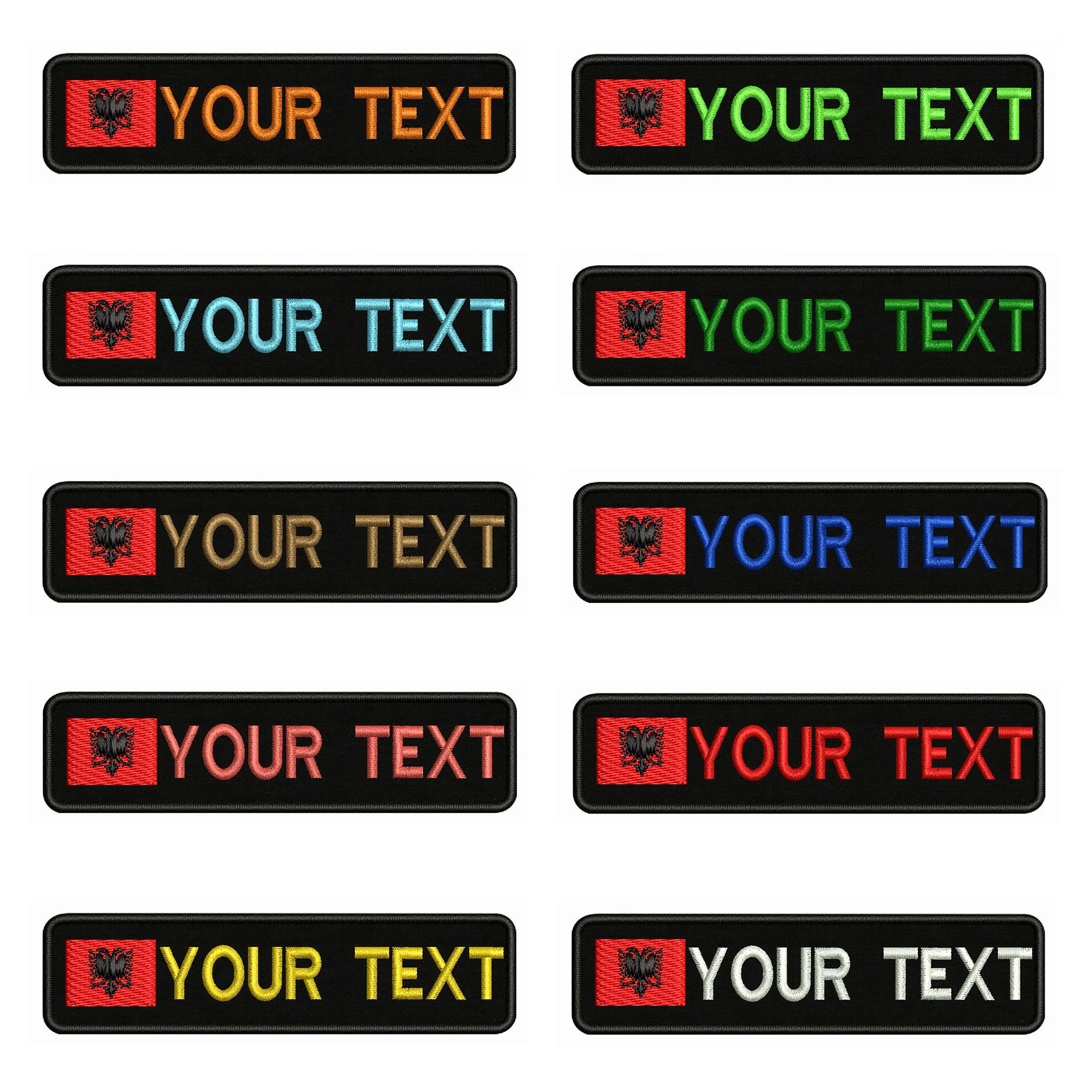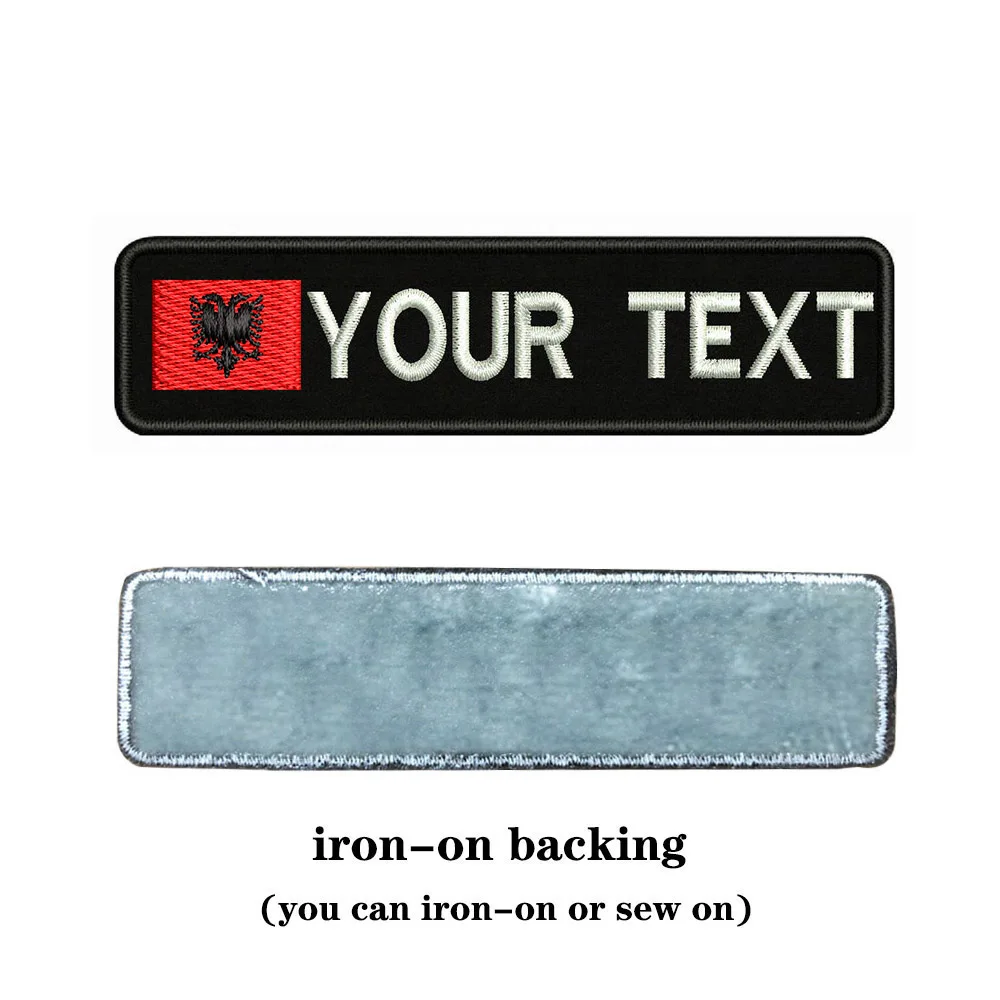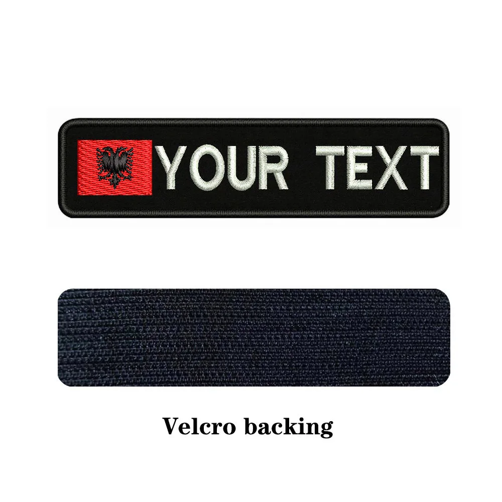 Албанским флагом Албании 10X2.5cm вышивка пользовательское имя заплатка с текстом полосы значок с помощью утюга или застежка-липучка патчи