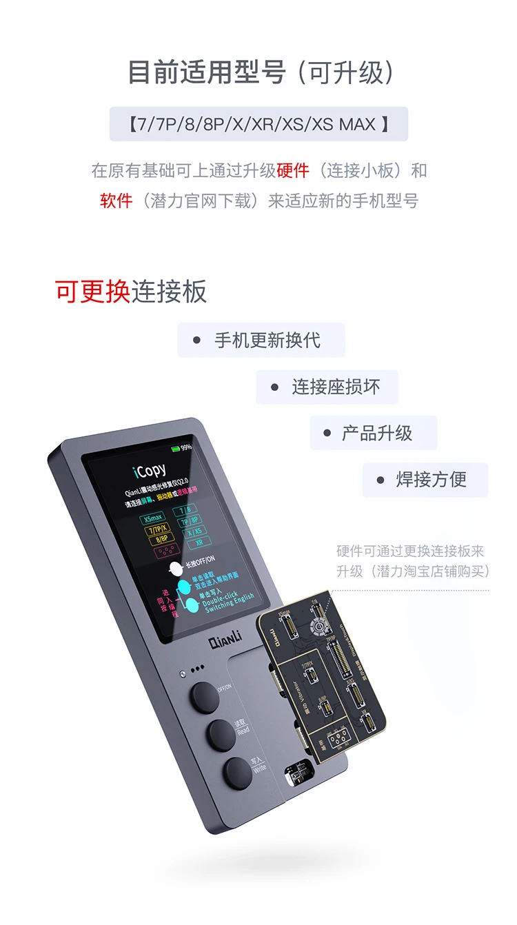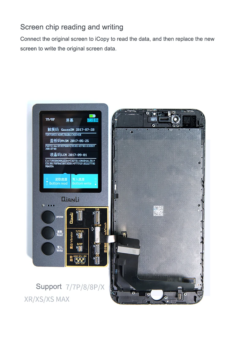 Программатор Qianli iCopy Plus для iPhone 11, XR, XS MAX, XS, X, 8P, 7, с вибрациейсенсорным экраном, 2,1 дюйма