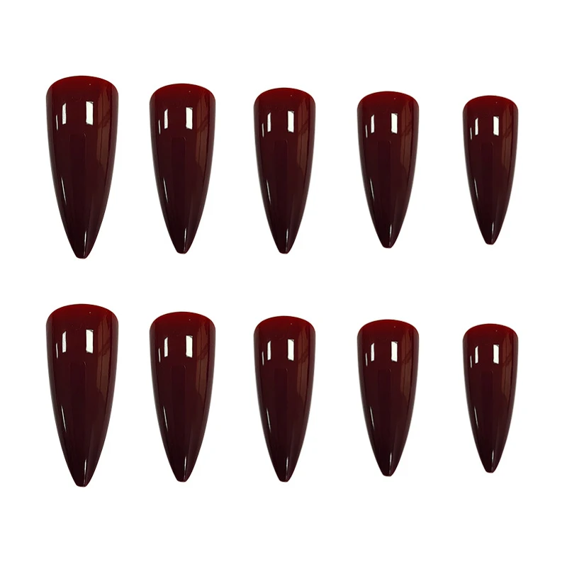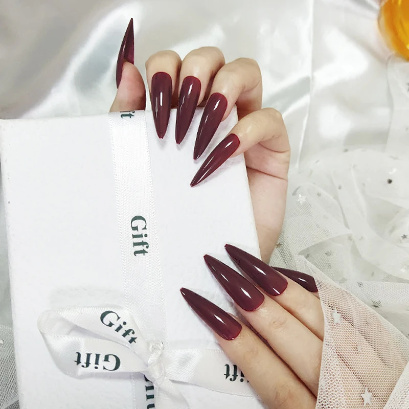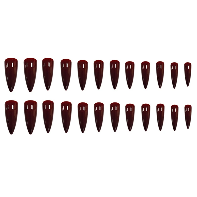 Удлиненные накладные ногти-стилеты ногтей, 24 шт.компл., простые винно-красные декоративные накладные ногти с клеем, искусственные накладные ногти