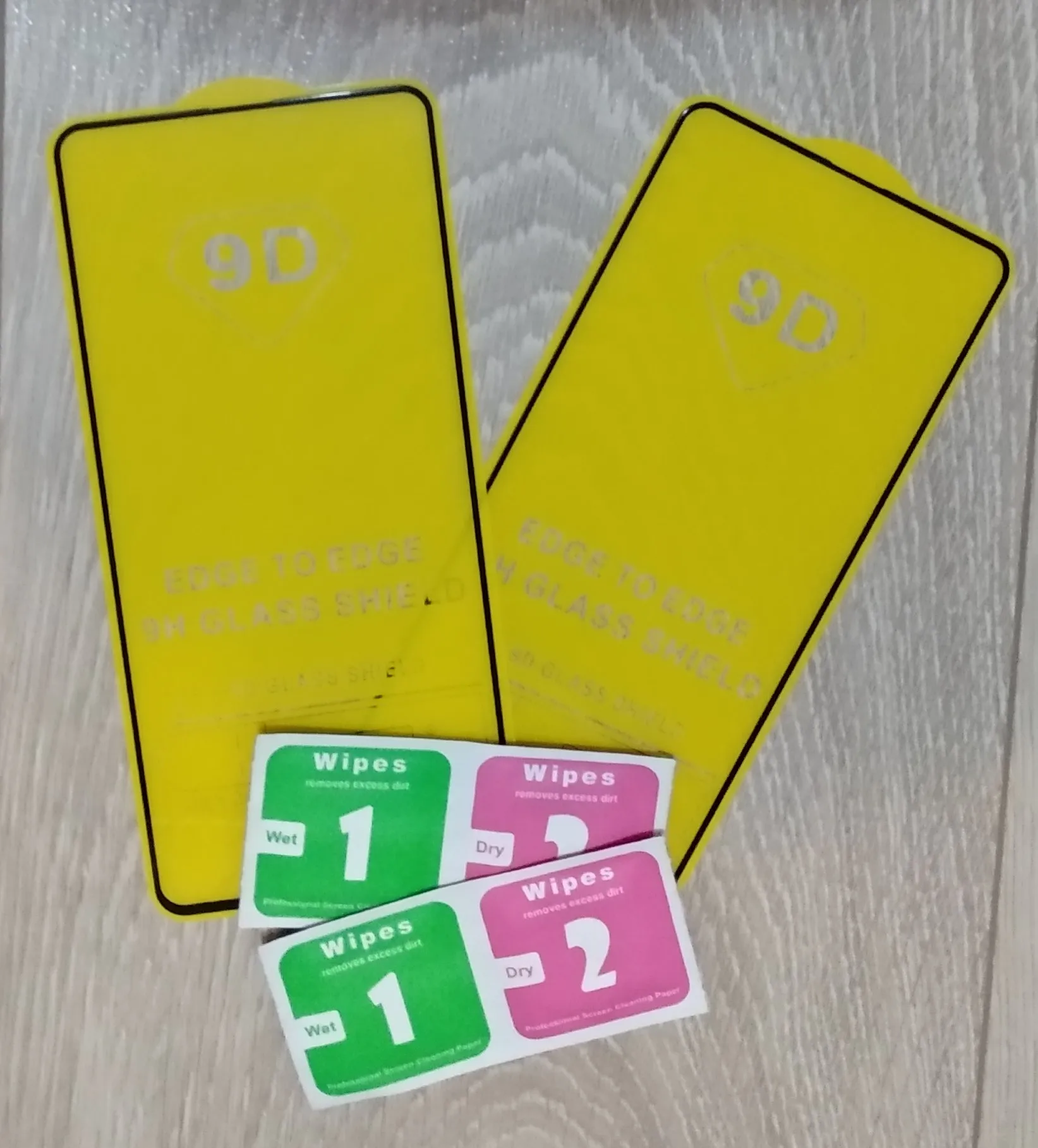 Заказ дошёл за 9 дней. В коробке 2 стекла и по 2 влажной и сухой салфеток. Салфетки небольшие по размеру, но на приклеить мне хватило. Само стекло легло идеально - я доволен )