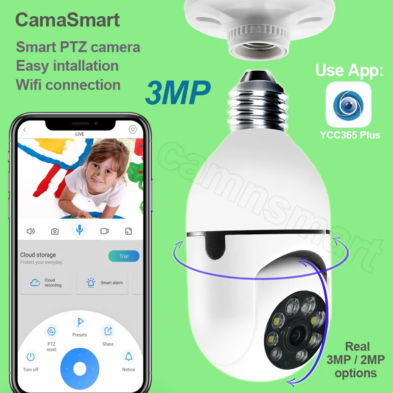 3-мегапиксельная E27 лампочка Wi-Fi камера мини плюс умный дом видеонаблюдение полноцветное ночное видение Ycc365plus APP управление