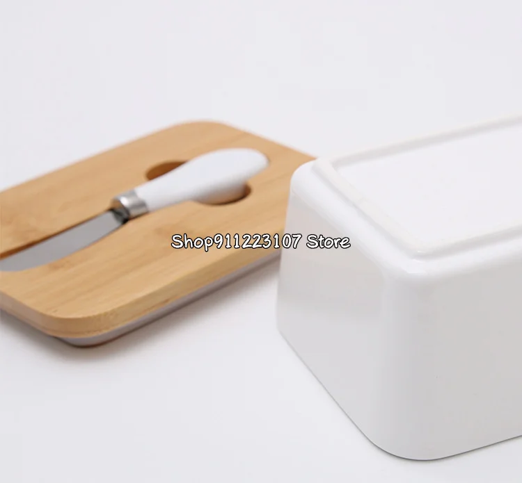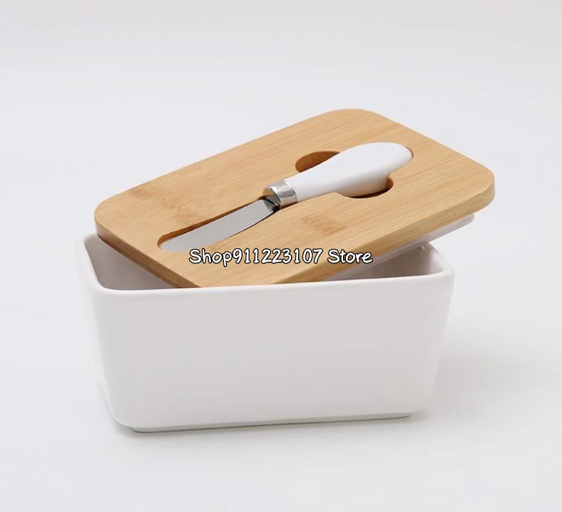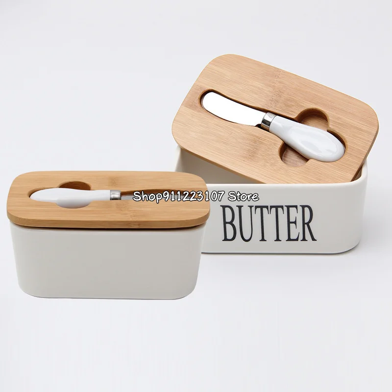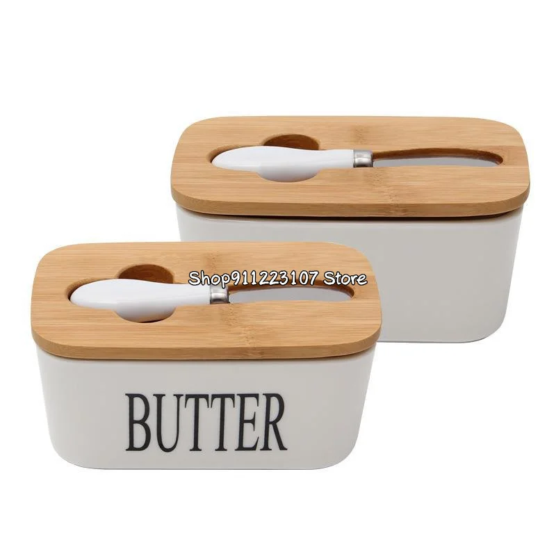 Nordic Керамика масленка деревянная крышка с Ножи масло уплотнительной пластиной лоток для хранения блюдо сыр кухонный пищевой контейнер масленка