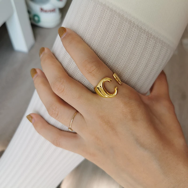 2021 ювелирные изделия подарок качество улучшенное открытый размер 18k позолоченные индивидуальные золотые кольца с буквами для Женщин Смелые начальные кольца