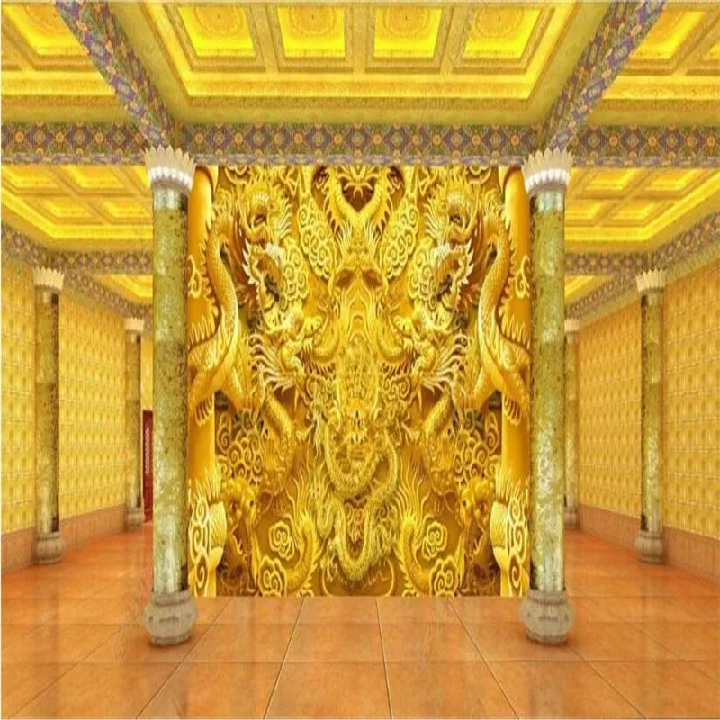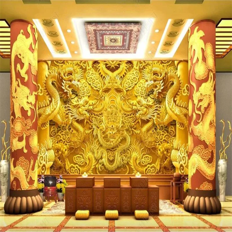 3D стереоскопический рельефный золотой китайский дракон фотообои для отеля ресторана гостиной обои домашний декор